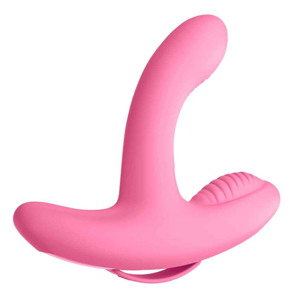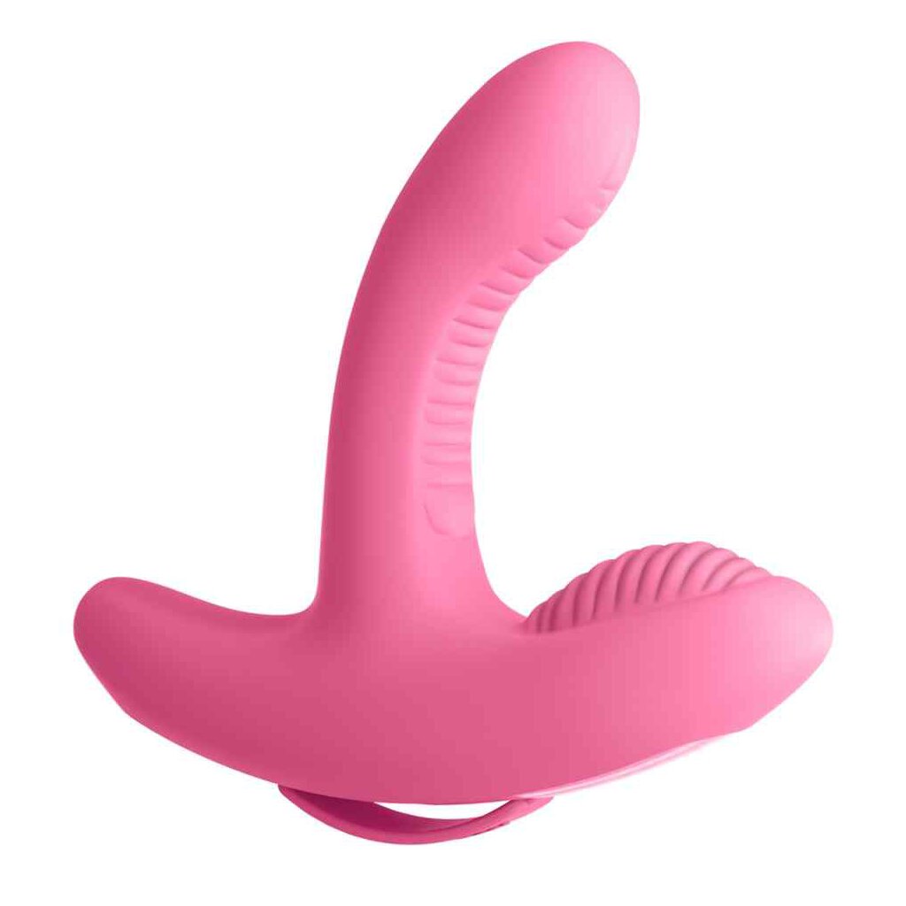 Dieser Vibrator ist zur doppelten Stimulation ideal – das streichelzarte Silikon des Vibrators gleitet wie von selbst hinein, während der Flügel die Klitoris sanft bespielt. Zwei Motoren stimulieren dabei in 10 aufregenden Vibrationsmodi. Die Halteschlaufe gibt sicheren Halt, um die G-Zonen-Spitze am G-Punkt hin- und her zu bewegen für ein aufregendes, vaginales Feuerwerk. Spritzwassergeschützt. Inklusive USB-Ladekabel und Batterie für die Fernbedienung: 1 x CR1620.