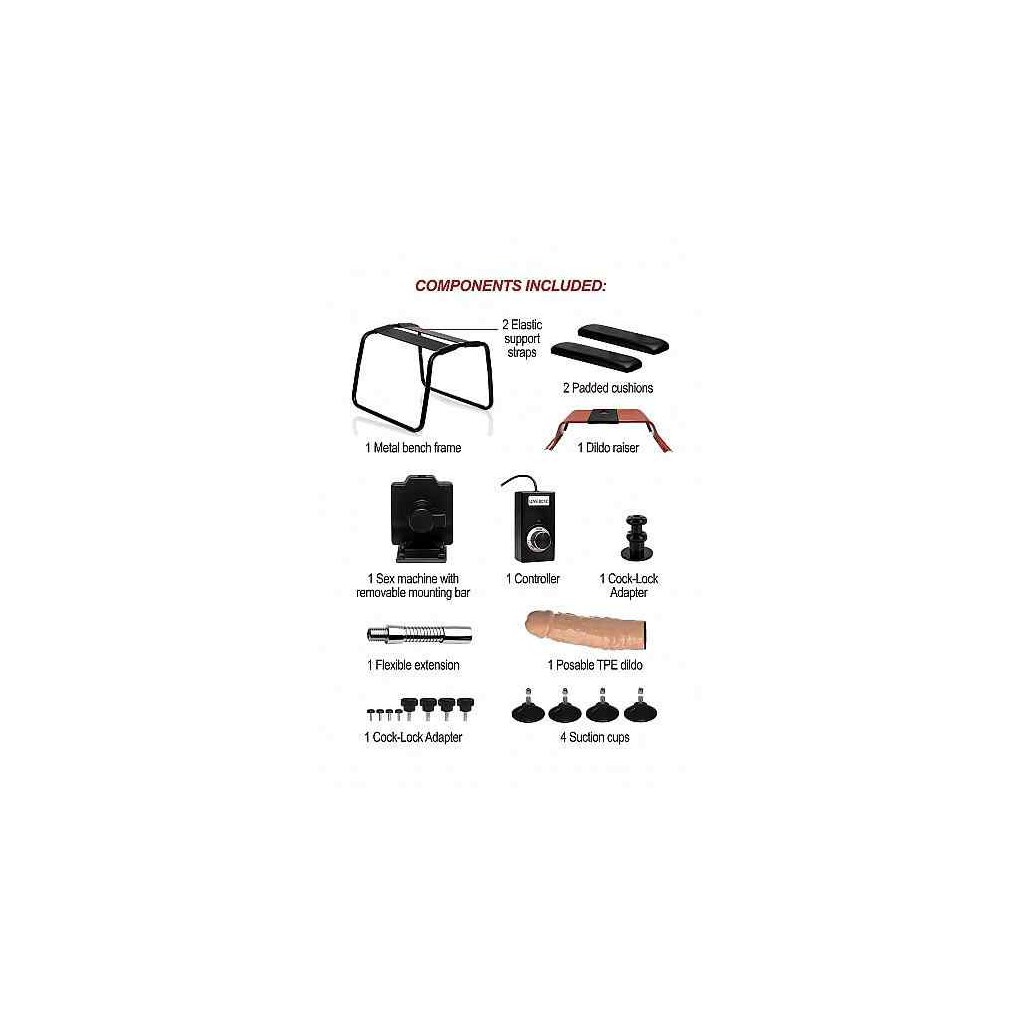 Vous avez envie de prendre encore plus de contrôle ? Attachez votre gode à ventouse préféré à l'élévateur métallique rouge, ou utilisez le harnais inclus pour fixer un dong à base large et rebondissez de haut en bas sur les sangles de siège extensibles pour vous baiser. Utilisez-le seul pour une pénétration intense à vos conditions, ou offrez un spectacle à votre partenaire pour lui montrer ce qui vous pousse à bout. Vous pouvez même retirer la barre d'élévation et le sex-machine et l'utiliser comme tabouret de queening, en chevauchant le visage de votre amoureux pendant qu'il vous jouit par en dessous !
