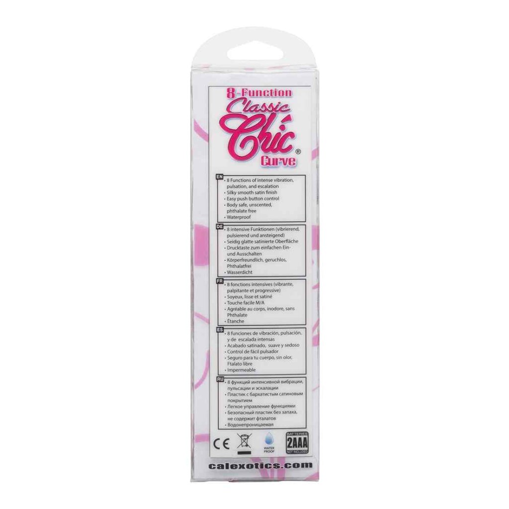If youre looking for an intimate massage experience with a difference, try our Classic Chic Curve with 8 functions that will take your bedroom play to a new level. There are 8 intense vibration functions to choose from and the massager has a unique shape that will give you extra pleasure with every move. The ultimate in G-spot stimulation awaits you with this unique design; the tapered shaft sends ripples and waves of pleasure through your body, and the curved tip provides perfect stimulation from different angles. If youre looking for a compact toy that offers multi-directional pleasure and powerful vibrations for tingling body sensations, this is a fantastic product from our excellent collection. Ideal for use alone or with your lover, this exciting massager can add a new dimension of fun and flirtation to your foreplay. Bring a sense of adventure to the bedroom and enjoy using the 10.8cm by 3.2cm massager with your partner and let the silky smooth Satin Finish coating tantalise your skin on all areas of the body. Compact in size for travel or discreet storage at home, the massager is designed in a variety of fun colours and is an ultra-stylish massager to add to your collection. With a simple push button system, this stylish massager is easy to use and only requires 2 AAA batteries.