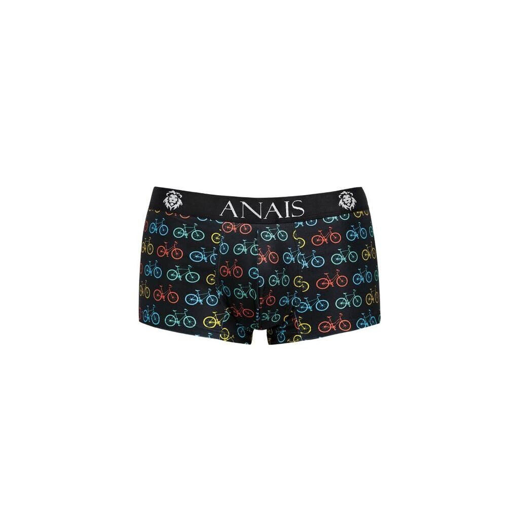 In einem eleganten Schwarzton gehalten, sind die Boxershorts mit einem lebendigen Muster von bunten Fahrrädern verziert.