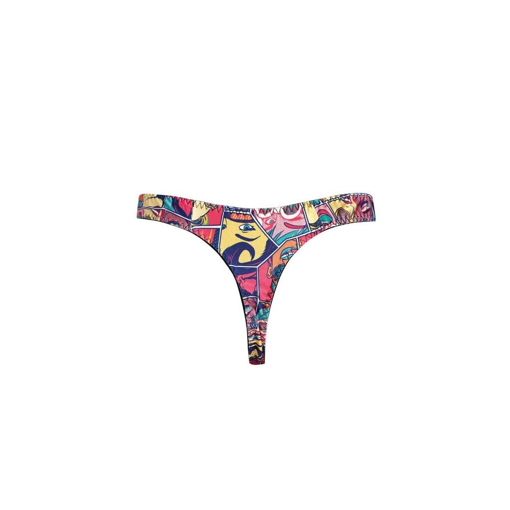 Der String ist in einem bunten Comicprint gestaltet, der sofort alle Blicke auf sich zieht und für gute Laune sorgt.