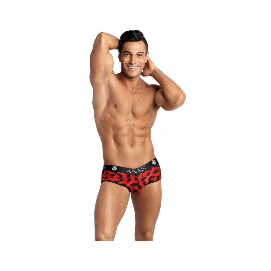 Tauchen Sie ein in die wilde Seite der Mode mit dem ANAIS Men Savage Jockslip in rot mit schwarzem Animalprint.