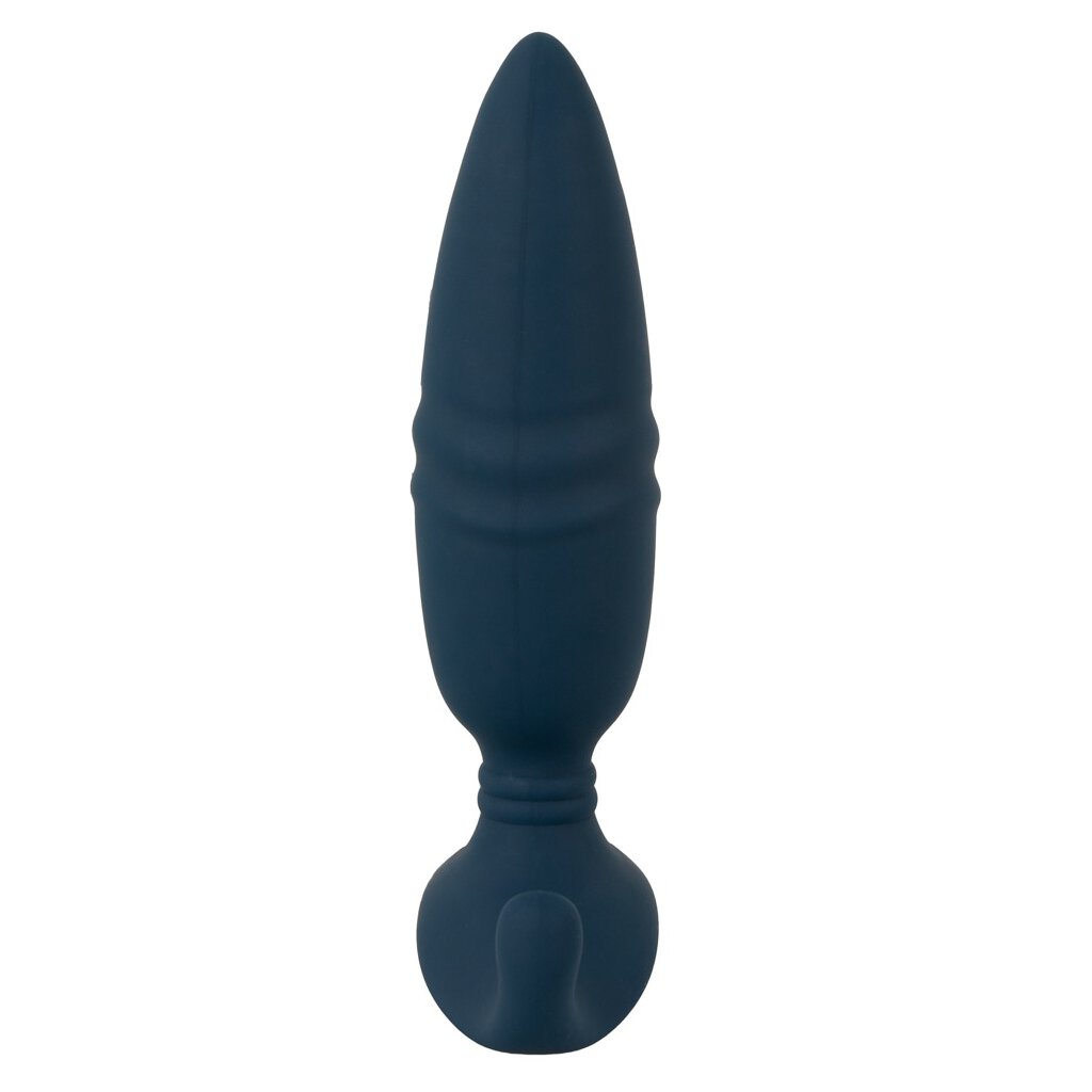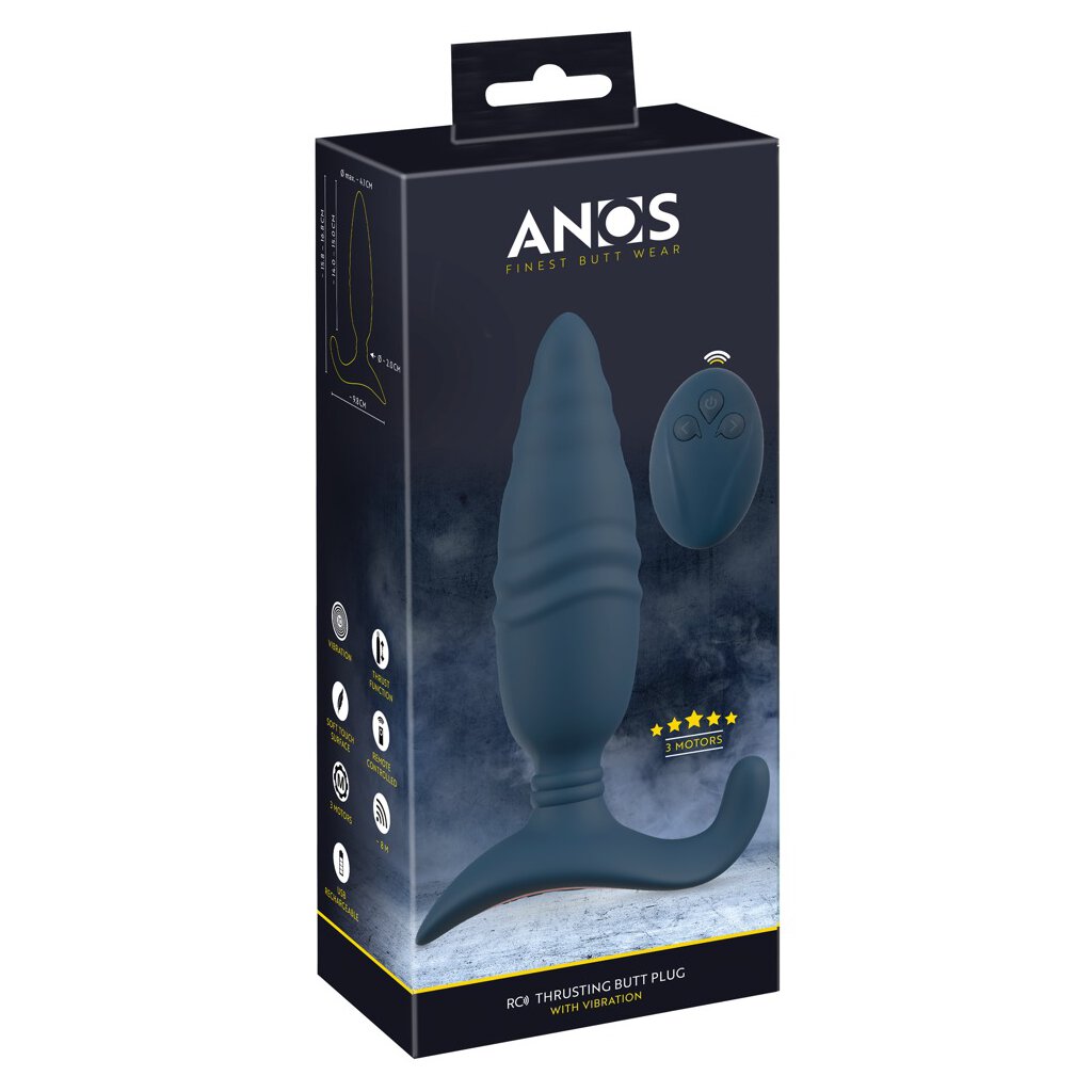 RC Thrusting Butt Plug mit Vibration von ANOS mit flexiblem Damm-Vibrationsstimulator. Der gerippte, gewellte Plug massiert den Analkanal und stößt mit seiner vibrierenden Spitze wiederholt zu. Der vibrierende und flexible Dammstimulator verwöhnt Damm und Anus gleichzeitig. Für ein Rundum-Analvergnügen, das richtig tief geht!