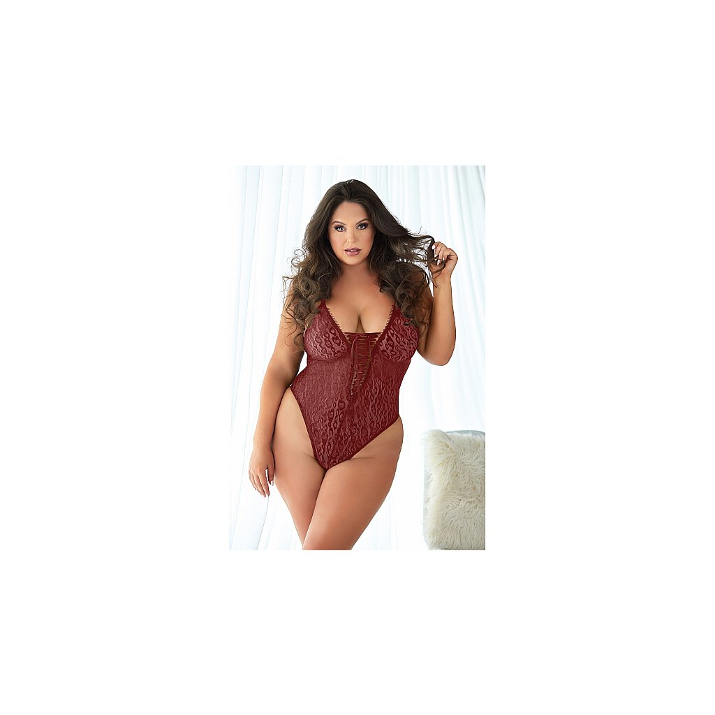 Avec le Leopard Lace Up Teddy Burgundy, vous êtes incroyablement belle. Taille 2XL/3XL / Composition : 90% polyester, 10% élasthanne