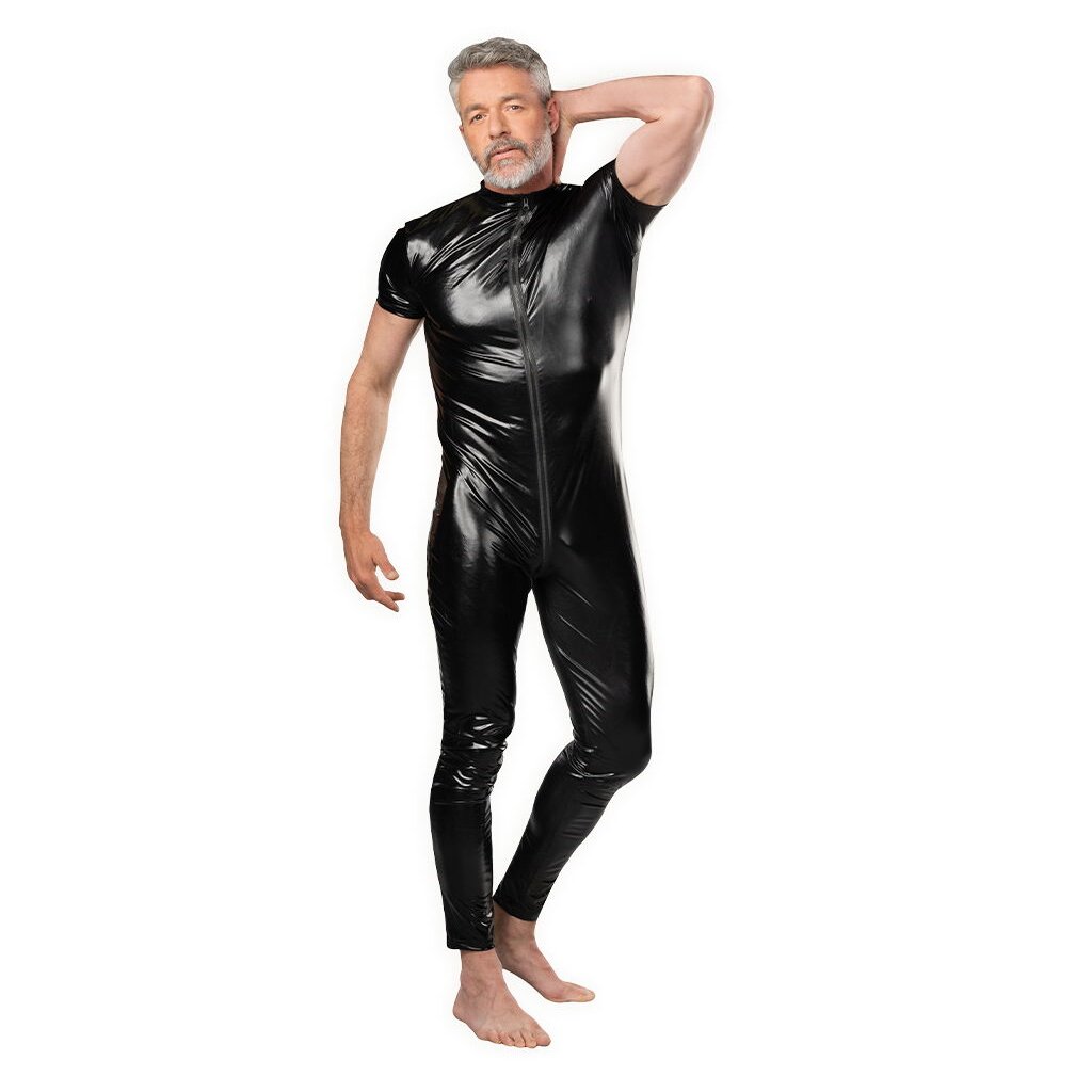 This wetlook overall from Amorable by Rimba fits like a glossy second skin, highlighting every curve with its sleek, body-hugging design. The stretch material of rayon and PU moves effortlessly with your body, offering both flexibility and a sensual, tight silhouette.