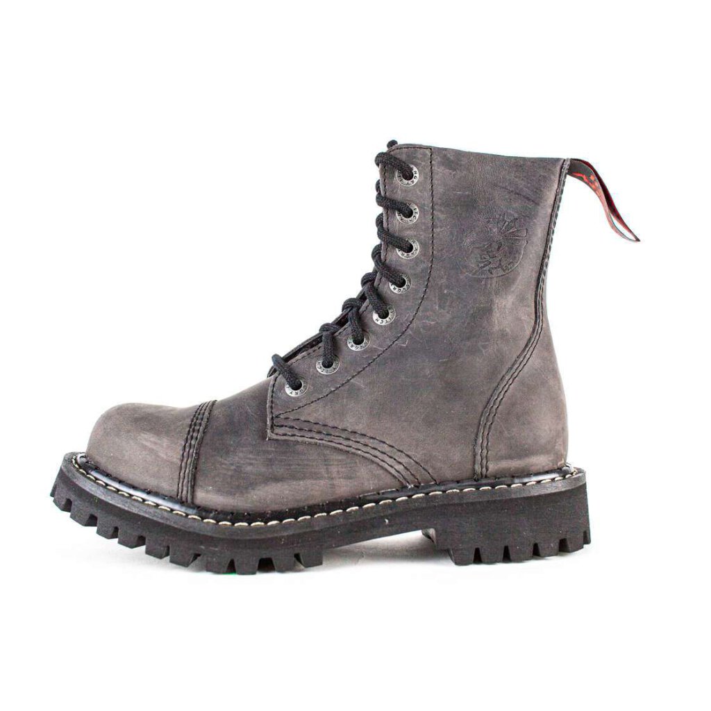 Modell: 08-Loch Farbname: Vintage Dunkelbraun Farbe: Dunkelbraun Obermaterial: Leder Futtermaterial: Leder Material Innensohle: Polyurethan Material Laufsohle: Gummi Reißverschluss: Nein Stahlkappe: Ja