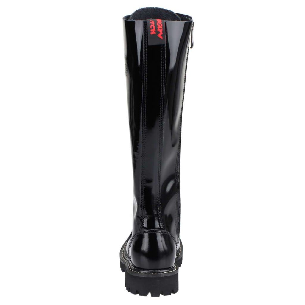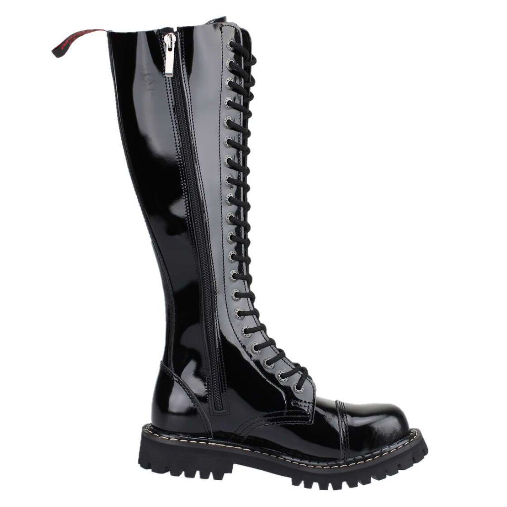Modell: 20-Loch Farbname: Schwarz Farbe: Schwarz Obermaterial: Lackleder Futtermaterial: Leder Material Innensohle: Polyurethan Material Laufsohle: Gummi Reißverschluss: Ja Stahlkappe: Ja