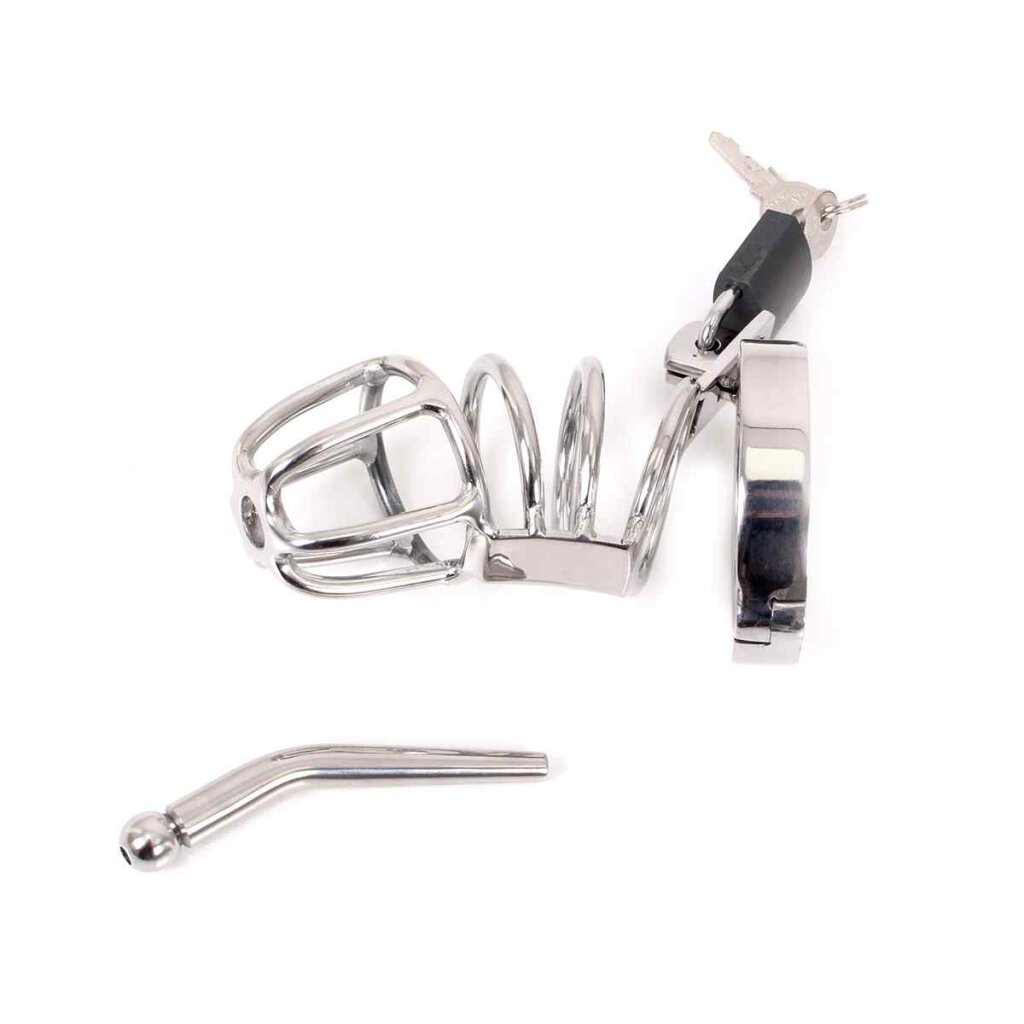 By wearing The Attica Chastity Cage it will feel like a jail cell for your penis, under your control. Made from stainless steel and designed with a curved spine, enclosure rings and a removable hollow penisplug.