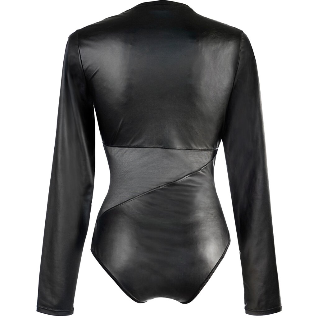 - Sensual, long-sleeved bodysuit in an extraordinary design made of leather-like material and delicate, stretchy tulle