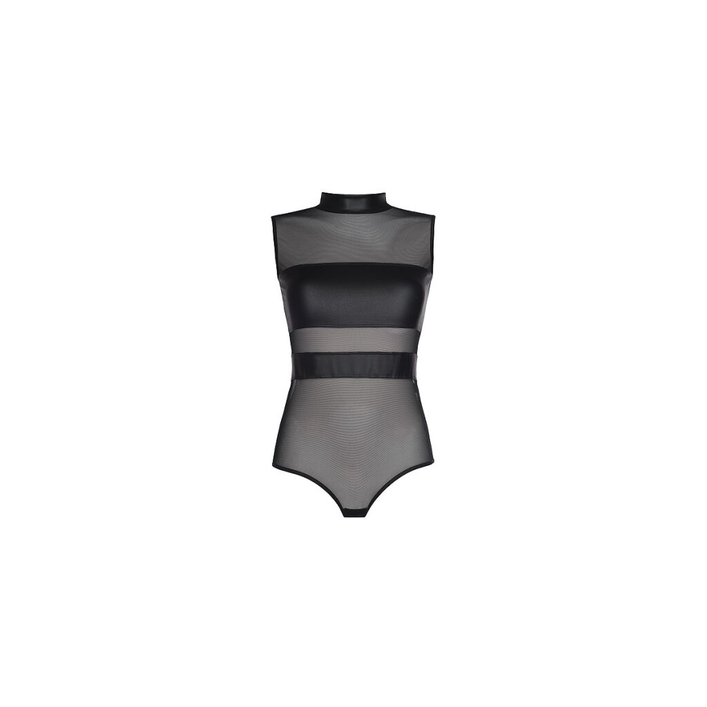 • Edler, ärmelloser Body aus einer Kombination von zartem Tüll und latexähnlichem