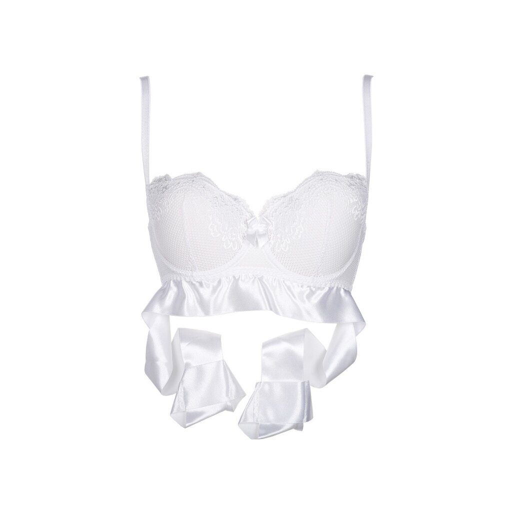 - Dessous du soutien-gorge, un matériau semblable au satin a été cousu, qui font office de manchettes, cette combinaison unique