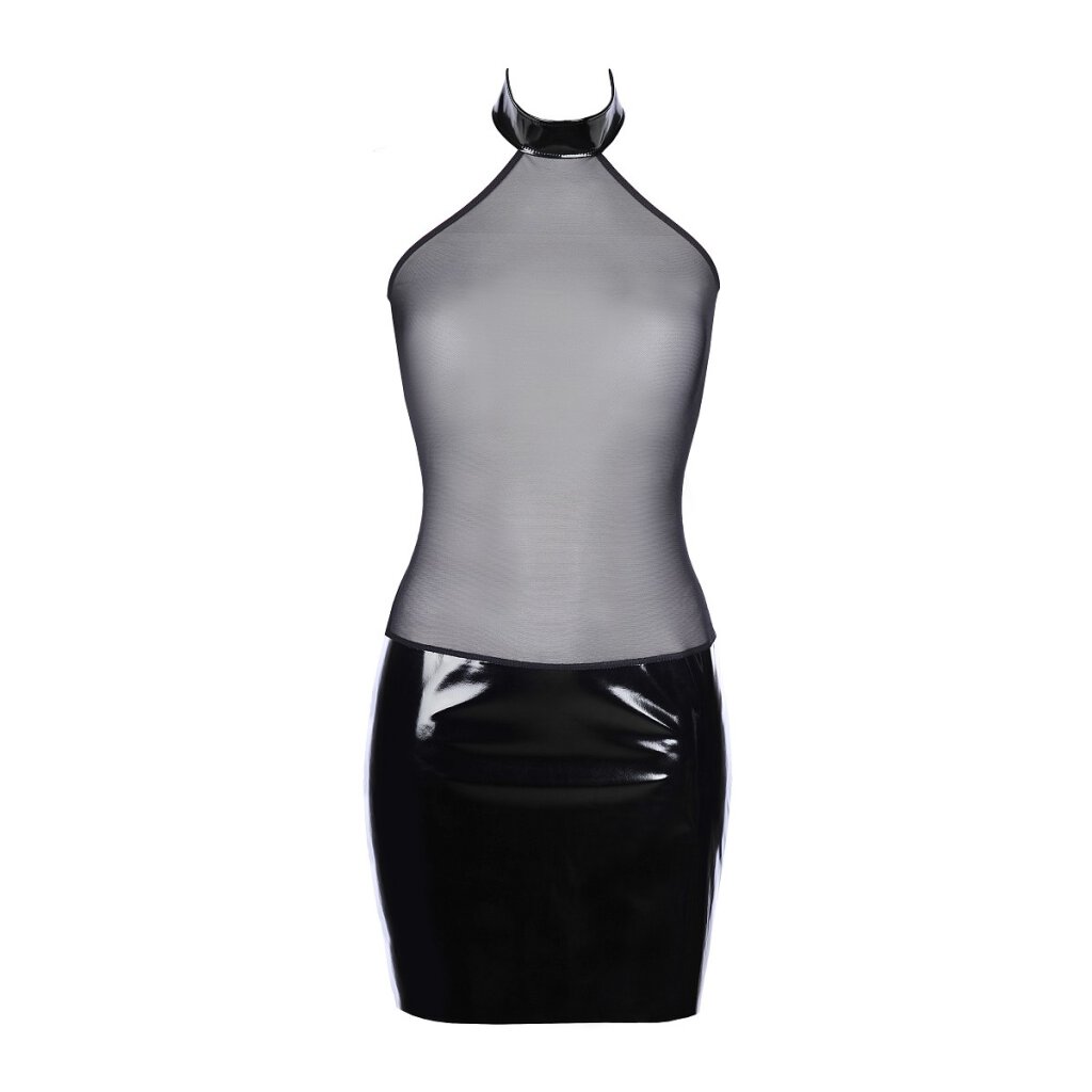• Verführerischesschwarzes Kleid gefertigt aus einem Mix aus latexähnlichem Material (untenrum)