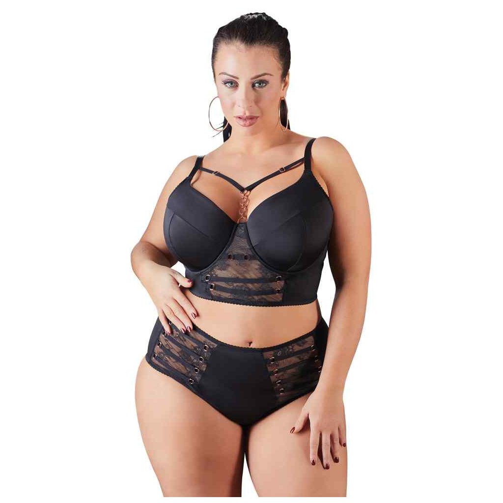 95% Polyester, 5% Elasthan; transparenter Spitzen-Einsatz vorne 90% Polyamid, 10% Elasthan.