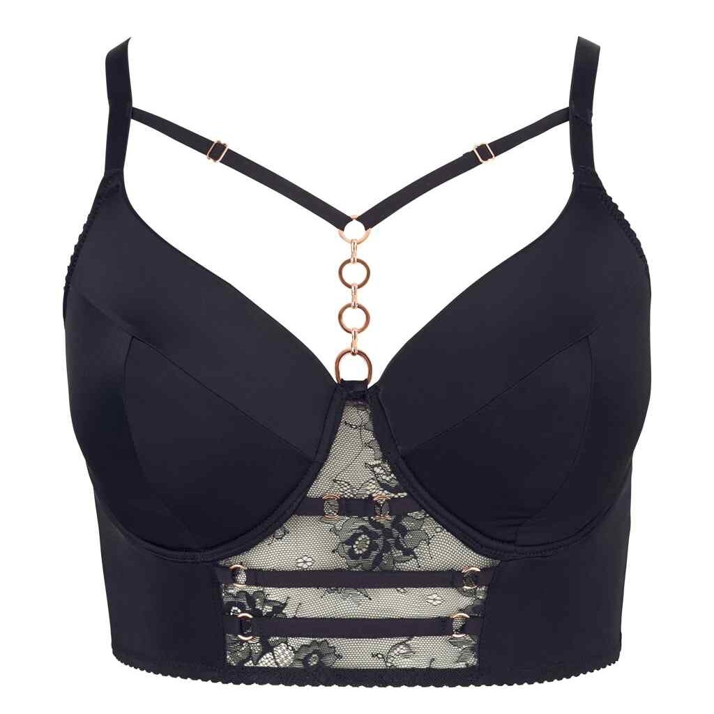 Longline-BH mit leicht gefütterten Bügel-Cups. Die raffinierten Cup-Bänder und die Träger sind für perfekte Passform verstellbar. Schwarz, mit edlen roségoldfarbenen Details. Blickdichtes, elastisches Material