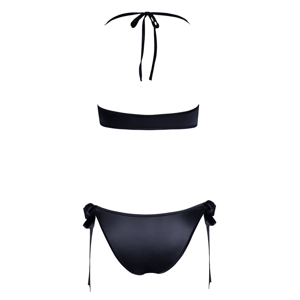 Soft bra and panties by Cottelli LINGERIE made of soft silky stretch material. Bra with halterneck to tie and binding bow between the cups. Briefs each with binding bow on the side.