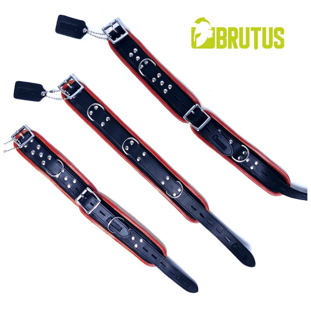 Leather slave collar from the BRUTUS Leather Collection. The strap is made from robust saddle leather, but the collar is lined with wonderfully soft leather, making it comfortable to wear. This collar has a lockable buckle (padlock not included). With 3 additional D-rings for bondage. Adjustable with 5 holes, suitable for a neck circumference of 39-49 cm.