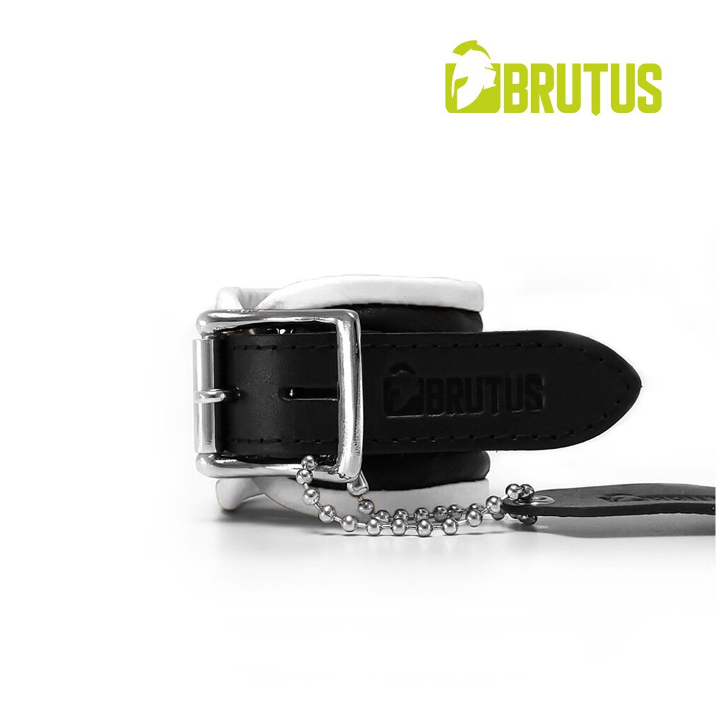 Leather handcuffs from the BRUTUS Leather Collection. The straps are made of robust and hard-wearing saddle leather, but these restraints have a wonderfully soft leather lining, making them pleasant and comfortable. These restraints have a lockable buckle (padlocks are not included). With extra D-ring for bondage. Adjustable with 5 holes, suitable for wrists with a circumference of 18-26 cm.