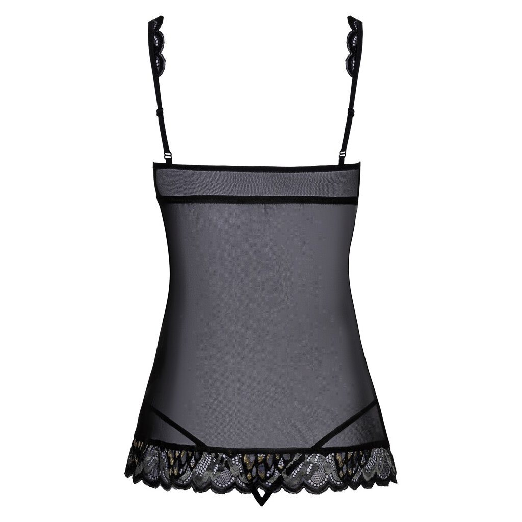 Babydoll & thong in a set from kissable. Babydoll made of fine powernet in the mix with noble effect lace. Soft and elastic all around for highest wearing comfort. The short babydoll is open at the front and is closed only with a clip closure under the decorative satin bow. Cup underwires and adjustable straps ensure a perfect fit. The sophisticated little thong made of effect lace seduces with its two narrow stretch straps that join at the crotch.