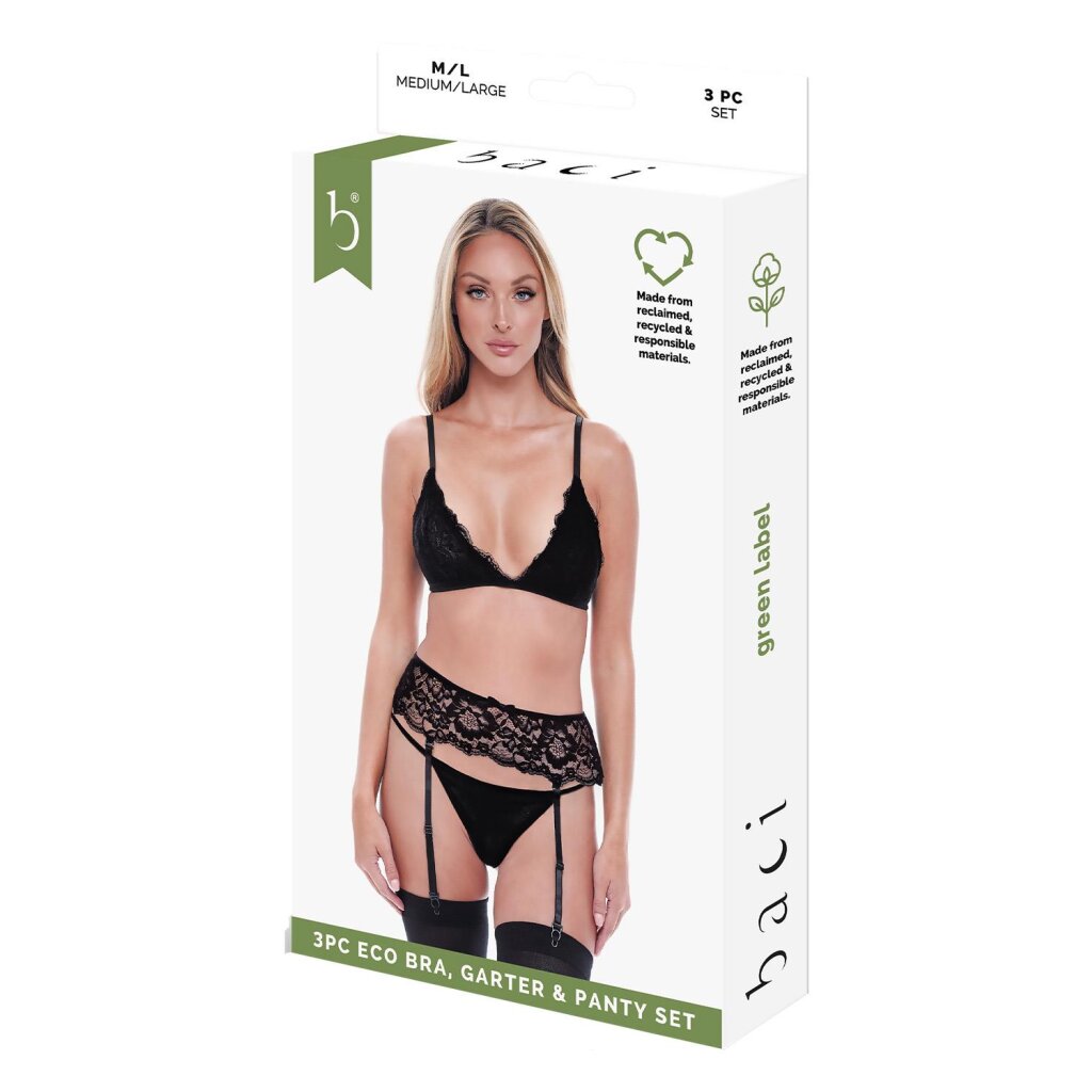 Baci Ensemble 3 pièces Soutien-Gorge Porte-Jarretelles et Culotte Noir M-L