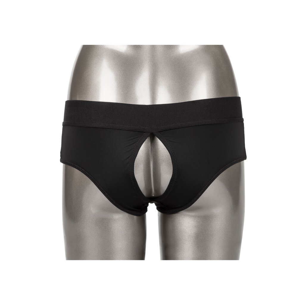The Her Royal Harness Backless Brief is an ultra-comfortable harness designed like a daring backless brief, with strong performance and comfort in mind. This daring harness has an extra wide waistband, soft stretchy material and a reinforced O-ring for the ultimate hold. The durable, reinforced O-ring stretches to accommodate your favourite probe, packer, vibrator or dildo. With its figure-hugging design, this comfort belt can be worn discreetly under clothing. Both beginners and experienced users will love this easy-to-wear harness. Simply attach your favourite probe, slip into the daring backless briefs and dive deep into passionate penetration or enjoy all-day comfort. Easy to clean by washing in the machine and hanging to dry. Size L/XL / Material: 78% nylon, 22% spandex (fabric), 48% nylon, 35% polyester, 17% spandex (waistband)