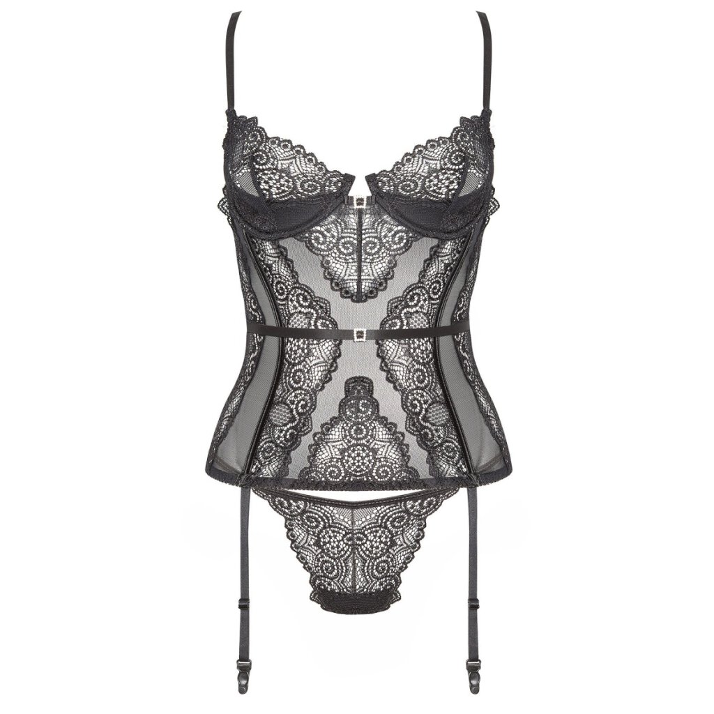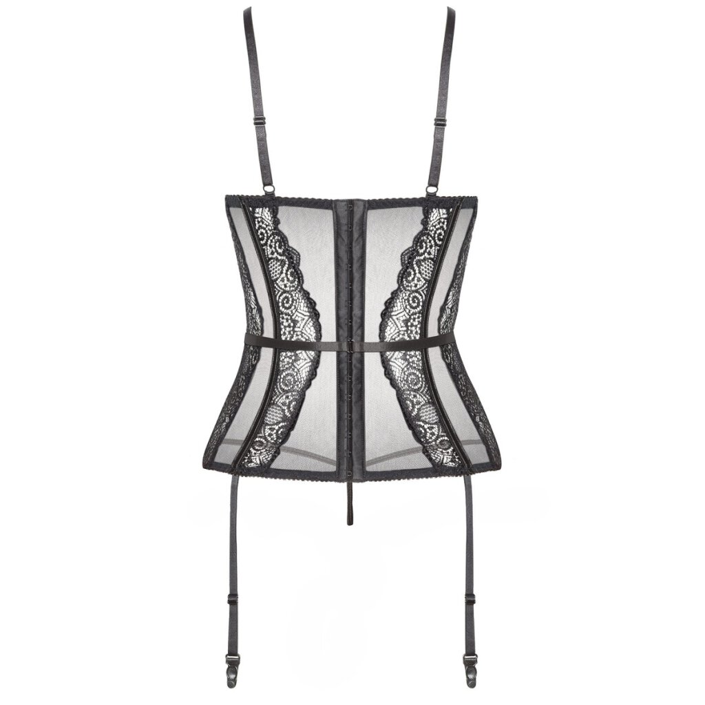 • Exzellentes schwarzes Corset aus zartem, transparentem Tüll und hochwertiger Spitze