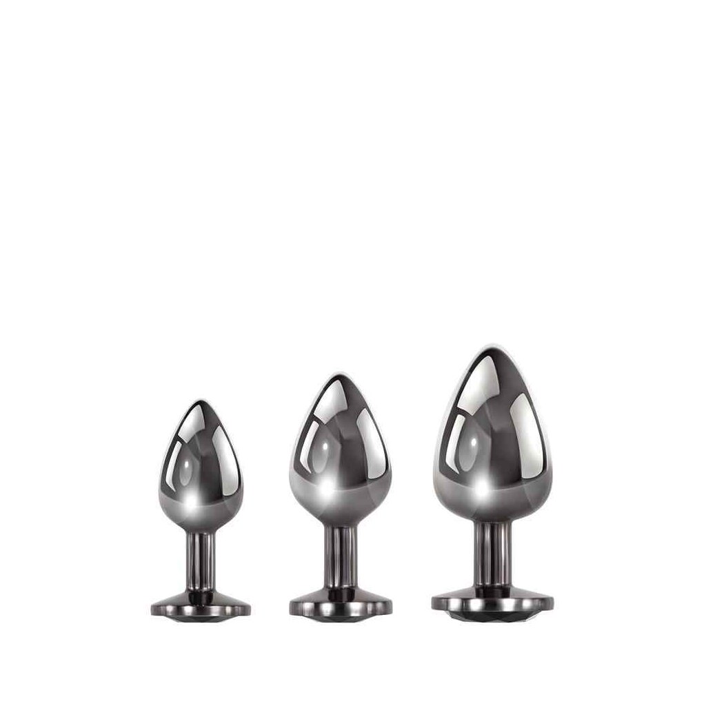 Verwöhnen Sie Ihr Hintertürchen mit diesem dunklen Metall-Analplug-Set, das Ihnen eine Welt der Lust eröffnet! Experimentieren Sie mit kleinen und großen Größen, um den perfekten Sweet Spot zu finden und die Intensität Ihrer Orgasmen zu steigern. Und dann zeige deinen Hintern, um das funkelnde schwarze Schmuckstück zu präsentieren! Erhitzen oder kühlen Sie Ihre Plugs vorher, um das erotische Spiel zu intensivieren. Mit Toy Cleaner und heißem Wasser reinigen. Samtbeutel mit Kordelzug für jeden Plug enthalten.