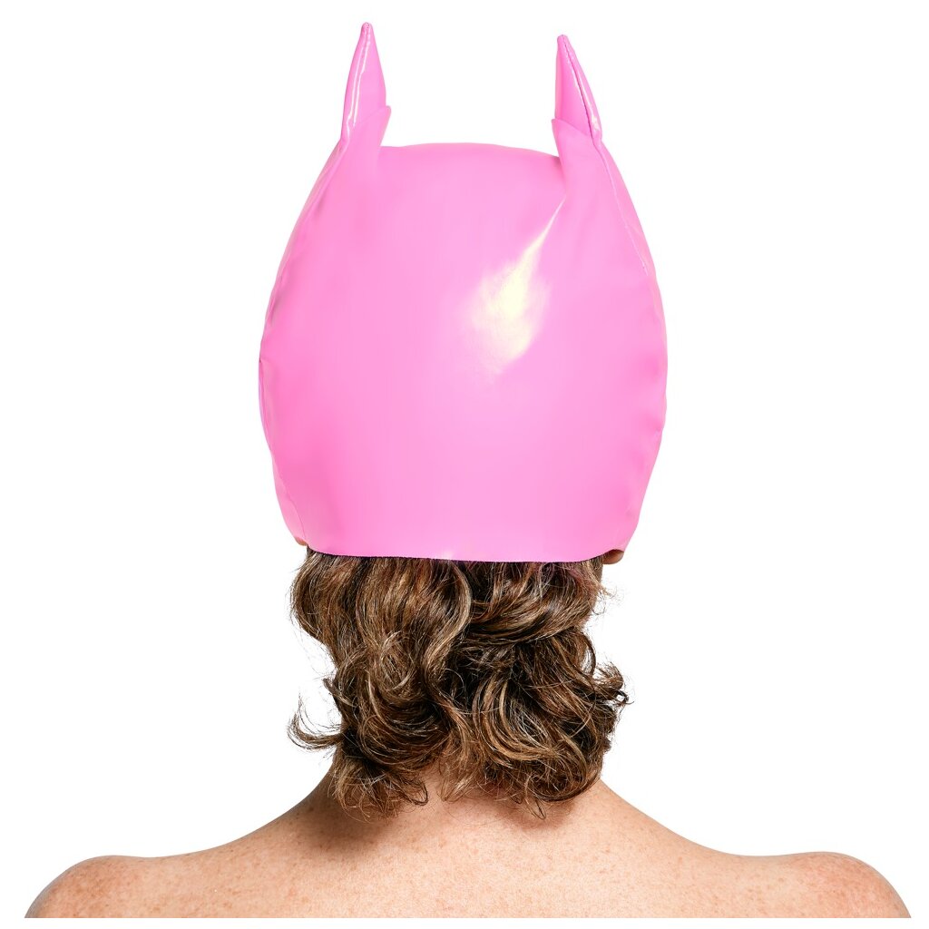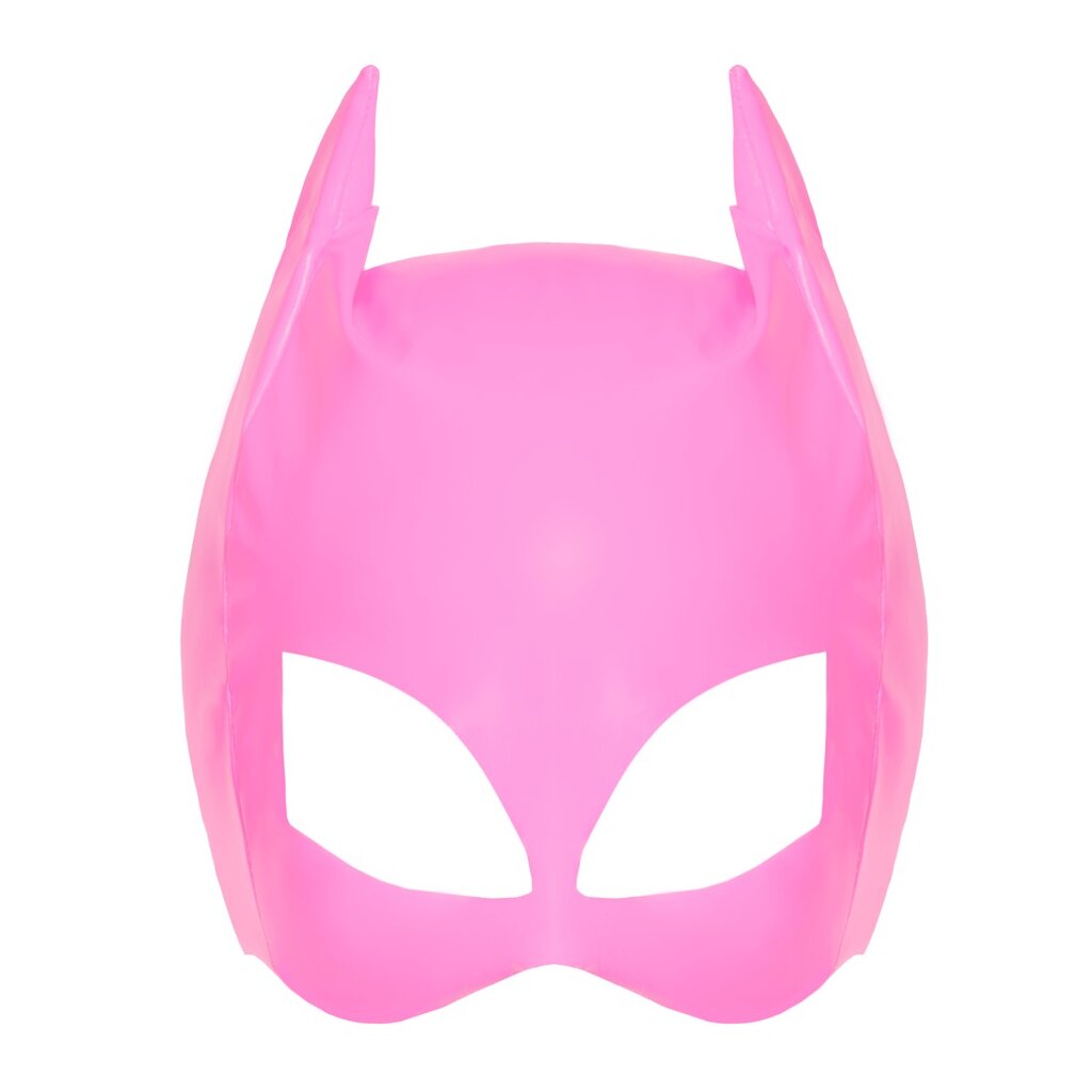 Halbe Kopfmaske von Black Level aus glänzendem rosa Lack. Im Katzen-Look mit kleinen Ohren und großen Katzenaugen-Öffnungen.