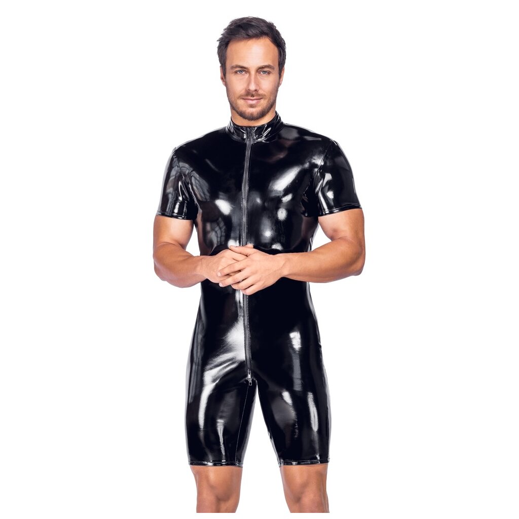 Fabriquée en 100% polyester avec un revêtement en polyuréthane, cette combinaison offre une brillance hypnotisante et une sensation douce au toucher. En taille XL, elle s’ajuste parfaitement au corps pour un look à la fois dominant, glamour et irrésistiblement érotique.
