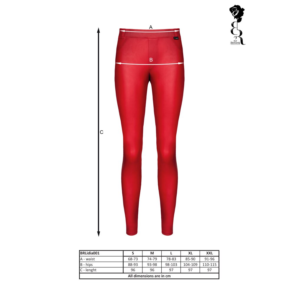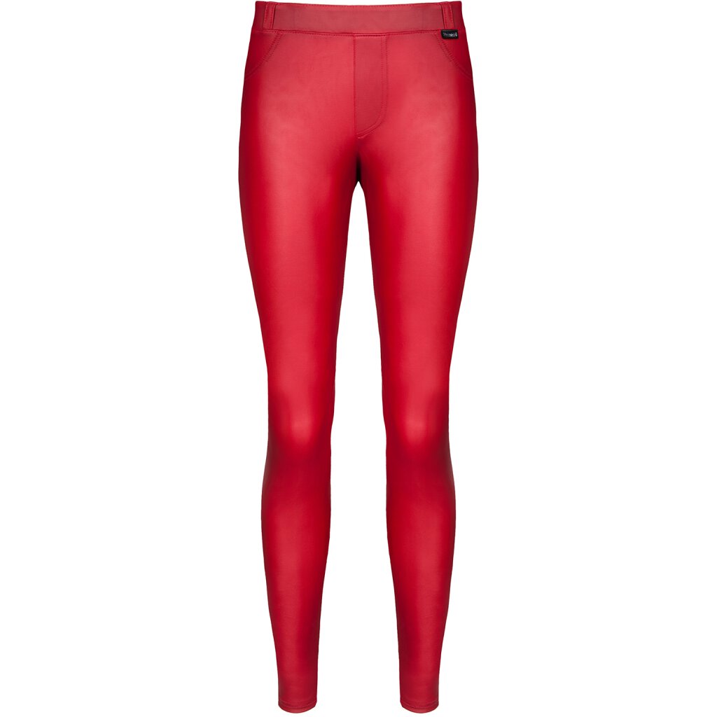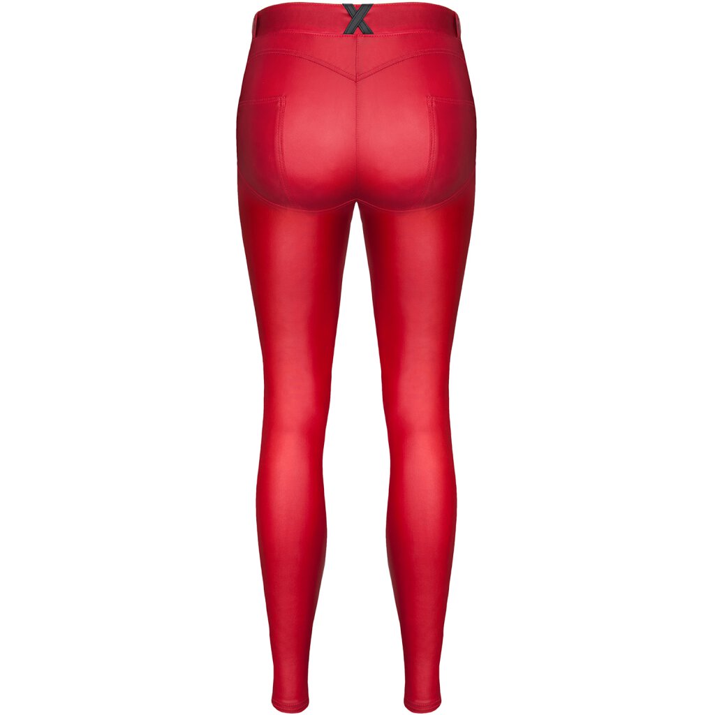 Leggings rouges, taille basse. Matière élastique, agréable au toucher, de couleur rouge. Ces caractéristiques rendent le pantalon confortable et s'adapte parfaitement au corps, montrant la forme fine des jambes. Le dessin sur la ligne des fesses a été spécialement préparé pour mettre sensuellement en valeur leur forme. Un "X" noir dans le dos attire l'attention. Le pantalon a des passants de ceinture. Parfait avec le haut STOrsola001 - visible sur les photos. 95 % polyester // 5 lastane Couleur : rouge