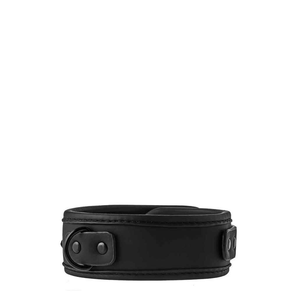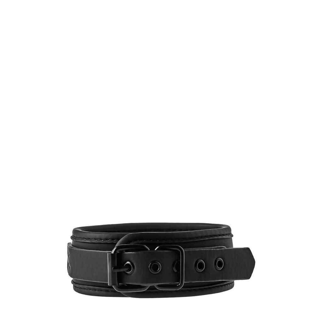 This black Collar and Leash set has all black nickel free hardware and is lined in a soft yet durable neoprene material for sexy and comfortable play. It is easy to adjust in size thanks to the buckle closure. The black metal leash with attached wrist loop can easily be connected or disconnected with the musketon clip.