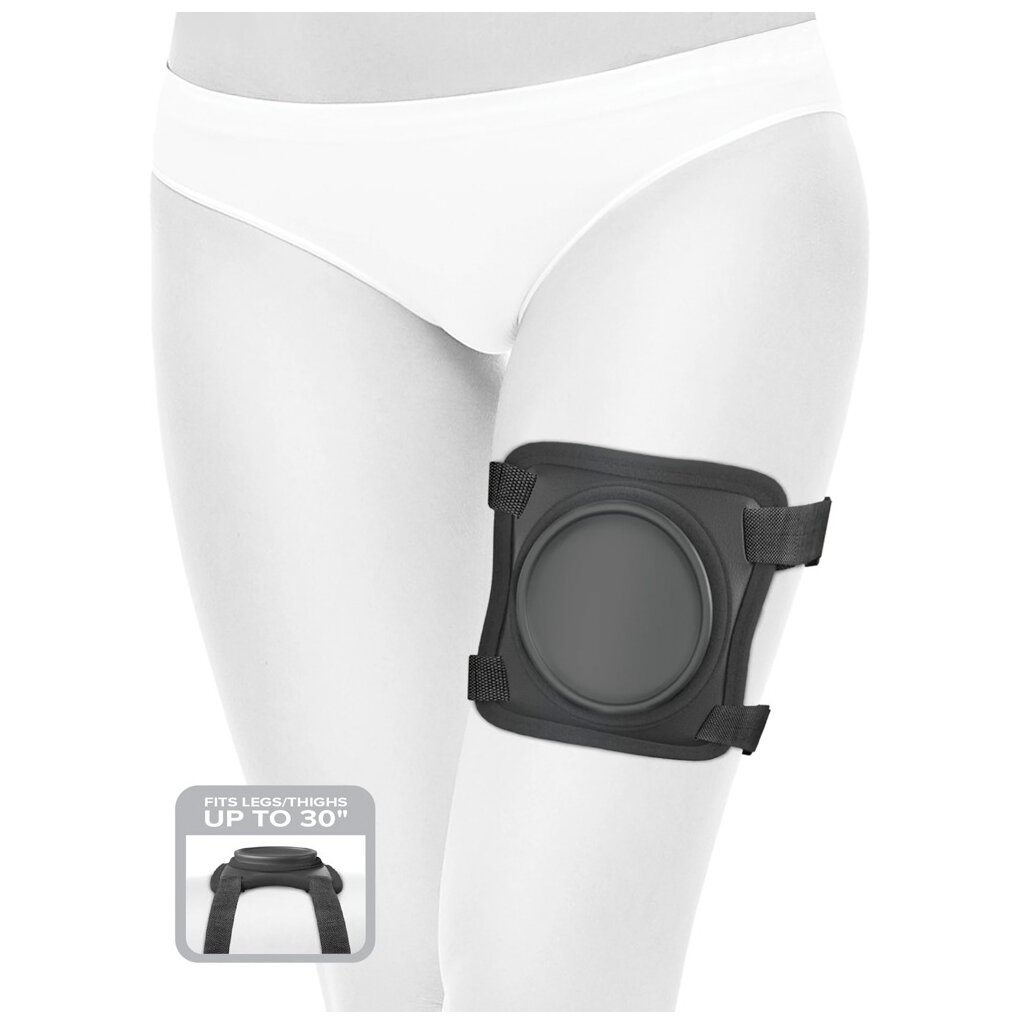 The comfortable strap-on strap Body Dock Lap Strap by pipedream is put on the leg/thigh in no time and equipped with a suction foot dildo/vibrator for a hot lap dance with thrusting pleasure. Thus, the Lap Strap also offers a helpful support in case of physical limitations. In addition, the Lap Strap can be strapped around pillows or cushions for an exciting solo ride.