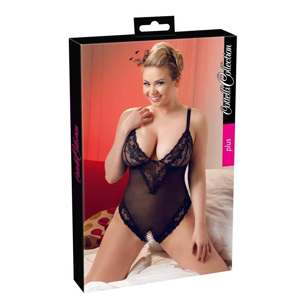 Aus Powernet und zarter Blütenspitze! Edler Body ouvert aus semitransparentem Powernet mit verstellbaren Trägern. Mit zarter Blütenspitze an den Cups, die in Richtung Körpermitte spitz ausläuft. Die Beinabschüsse vorne und hinten sind ebenfalls mit Blütenspitze verziert.