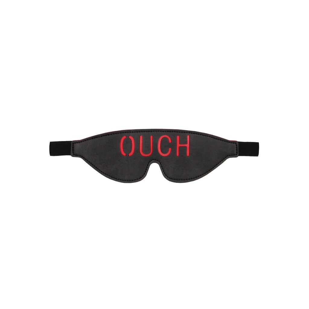 Put your lover in the dark with this leather eye mask and bring him to a peak of anticipation! The word OUCH is cut out and red leather is sewn against it for contrast.