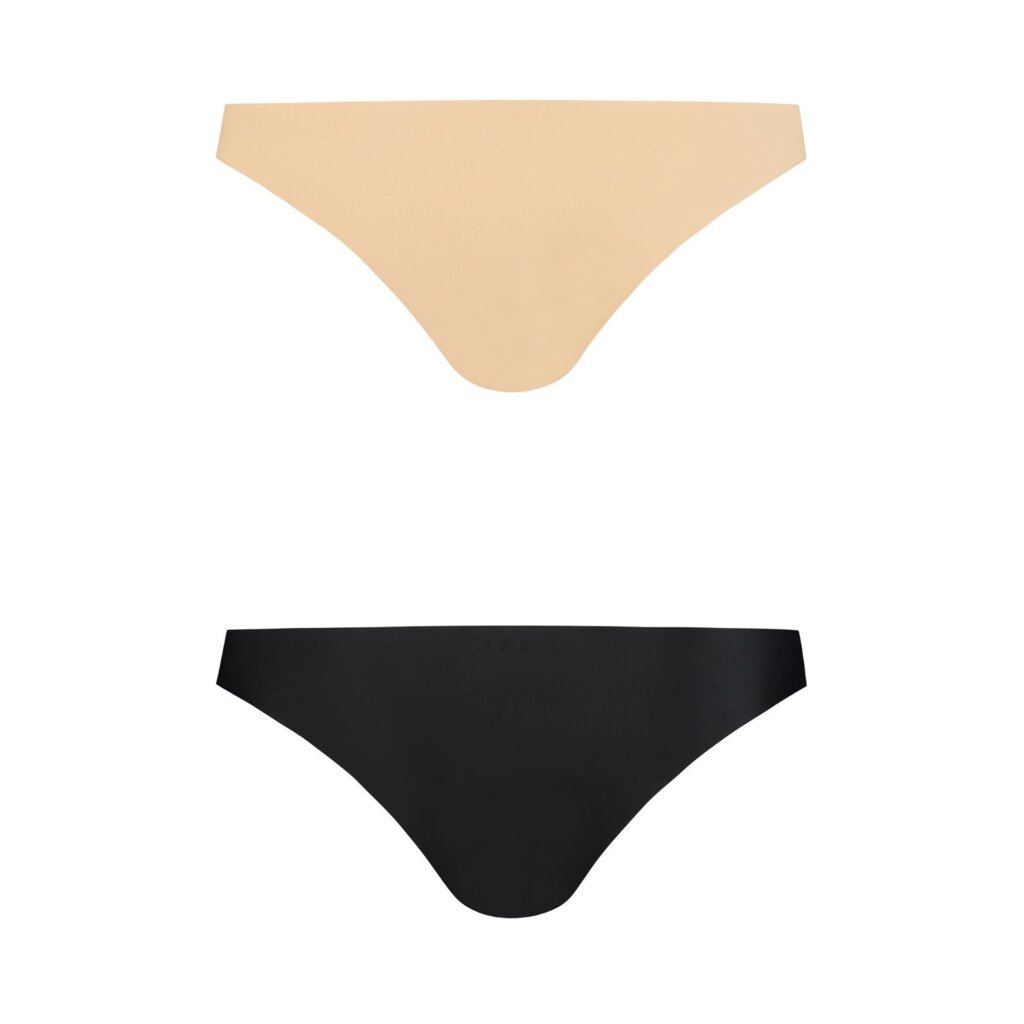 Lot de 2 slips brésiliens invisibles en nude et noir. Ils ont un tissu léger et sont entièrement sans coutures, parfaits pour les vêtements moulants ! Le gousset est en 100% coton, le slip en 88% polyamide et 12% élasthanne. Lavage à 30 degrés ou moins. Taille XL
