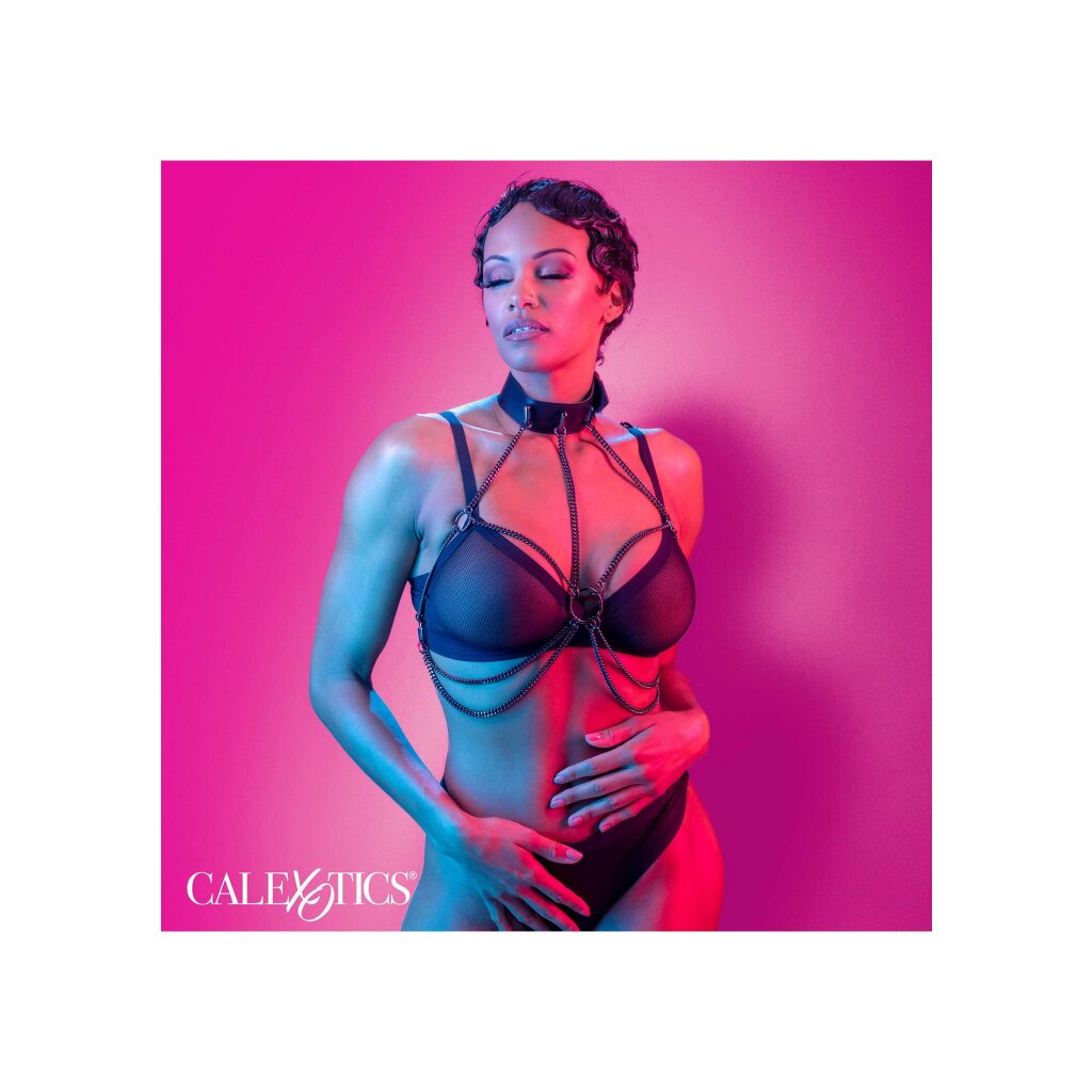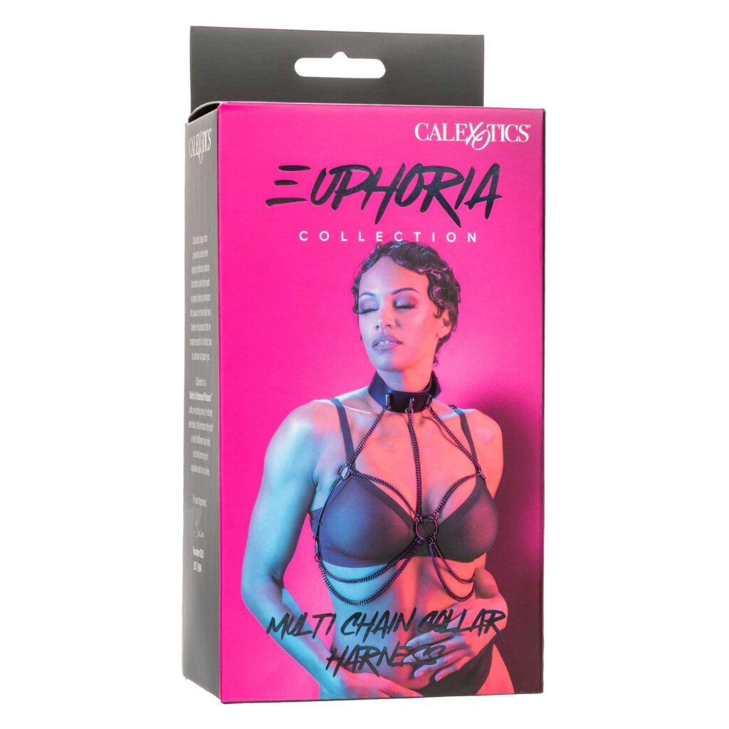 Embrace your curves with confidence with the Euphoria Collection Multi Chain Harness. Tailor-made for a secure and comfortable fit. The multi-chain design and sturdy collar add allure to your ensemble and are ideal for exploring wild fantasies. The secure buckle fastening ensures an easy adjustment that benefits your comfort. The contemporary design is built to last, with a soft velvet interior and luxurious vegan leather exterior. Double padding and stitching ensure comfort and reliability, while non-tarnish metal accents add a stylish touch. Experience the perfect blend of comfort, style and sensuality.