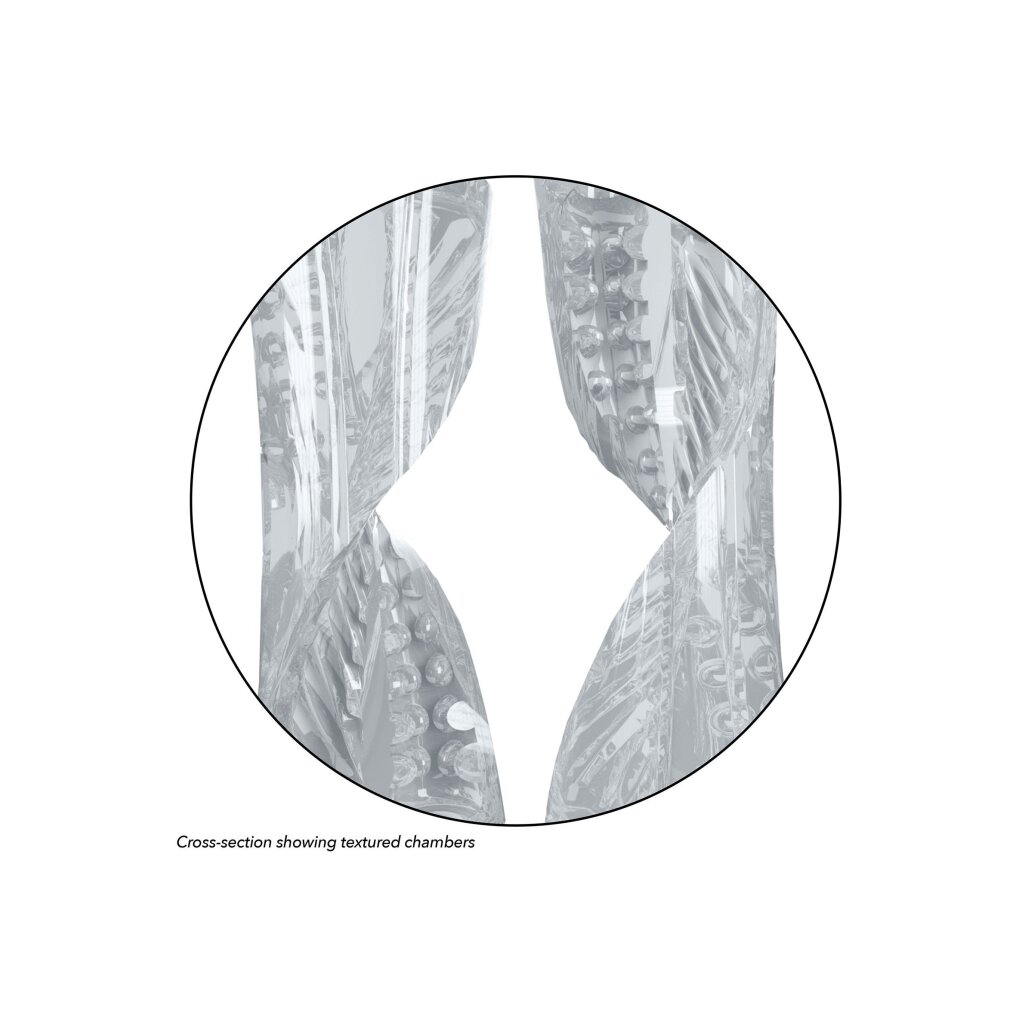 Die zwei strukturierten Innenkammern sind vollständig gerippt und sorgen für doppelte Stimulation bei jedem Stoß. Das transparente Design erlaubt es dir, jede aufregende Bewegung zu sehen und macht dein Spiel visuell noch intensiver.