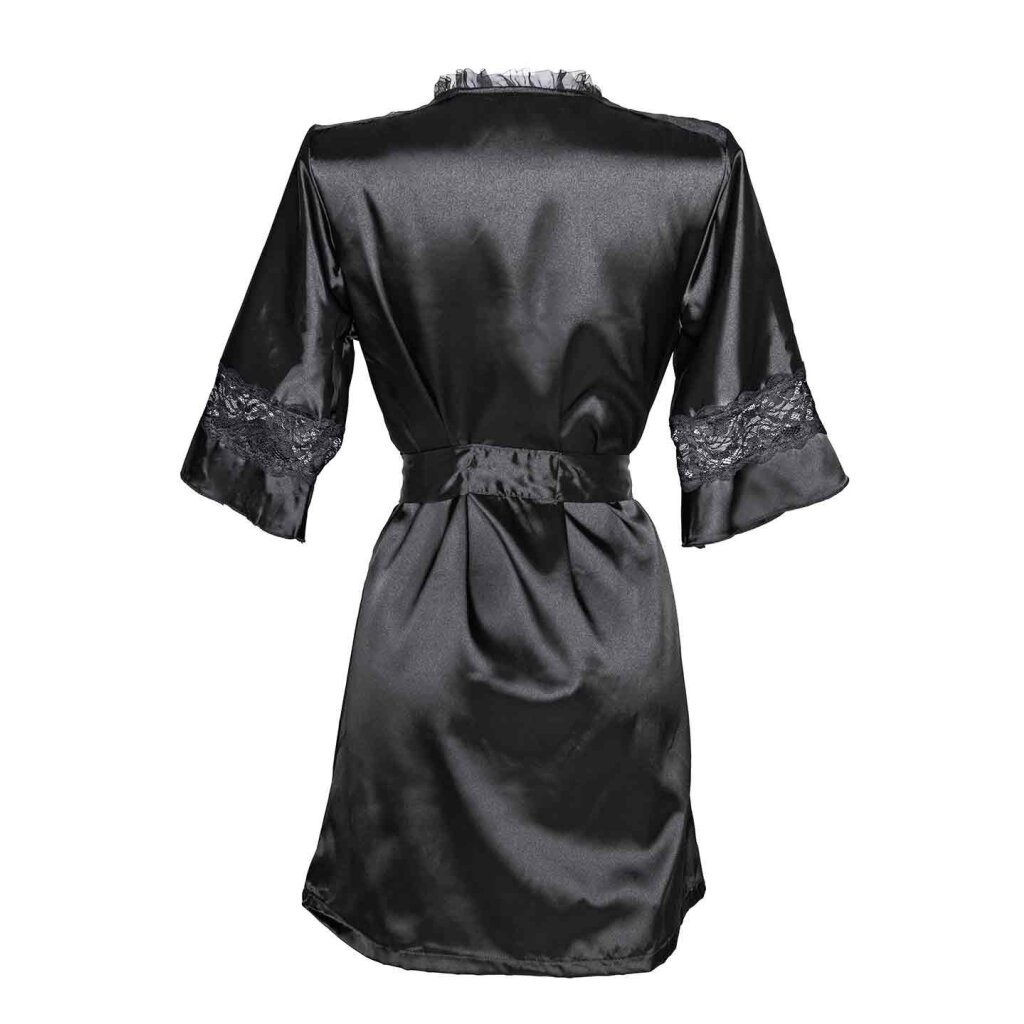 • Der Kimono hat Spitzeneinsätze für einen besonders verführerischen Look.