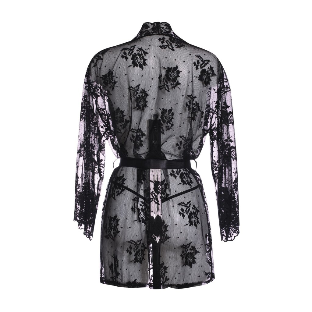 Die Wellenbesätze an den Ärmeln und auf der Vorderseite machen diesen Artikel so einzigartig. Dieser Kimono kann unendlich kombiniert werden. Tragen Sie ihn mit Ihren Lieblingsdessous oder ohne! Wie gewagt wollen Sie verführen ... Wird mit einem Gürtel geliefert.