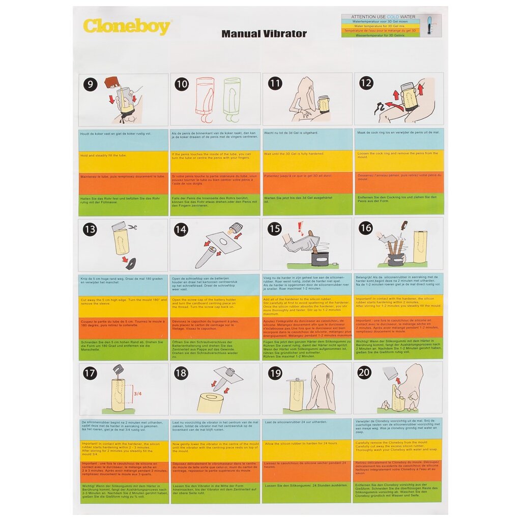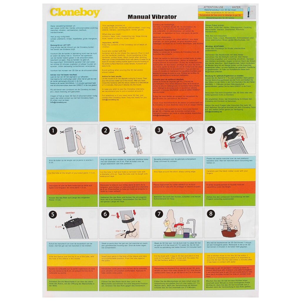 Mit diesem Penis-Abdruck-Set verewigen Sie Ihren Penis in seiner schönsten Form! So einen individuellen Vibrator gibt es dann nur einmal auf der Welt. Set bestehend aus (die Umverpackung des Sets dient als) Gussform, Penis-Zurrgurt, Manschette, Fläschchen mit Härter, 1 x 3-D-Gel, Silikongummi, 1 Paar Plastikhandschuhe, Holzspatel, Vibrator, ausführliche Gebrauchsanweisung. Ausreichend für Penisgröße (errigiert) bis 20 cm Länge und Ø bis 4 cm.