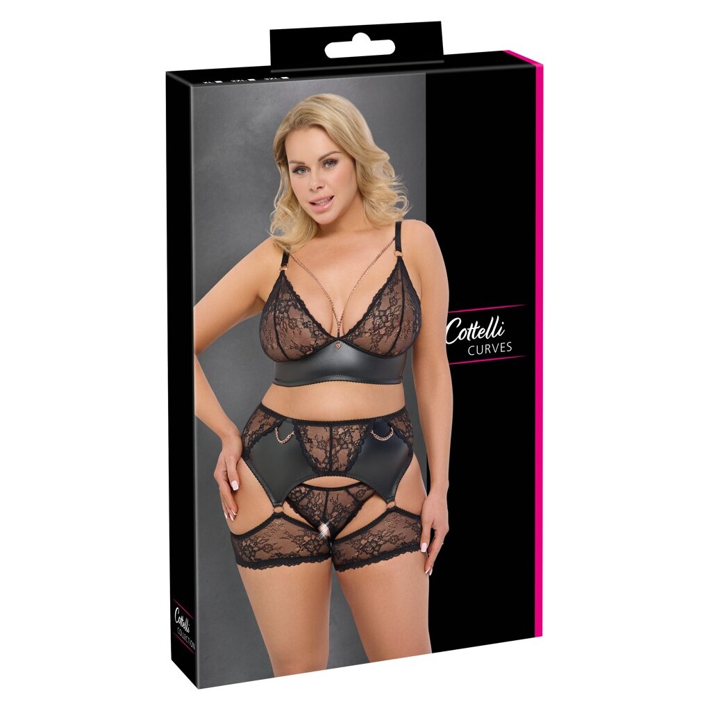 Erlebe die Spitzen-Eleganz mit dem verführerischen Straps-Set von Cottelli CURVES! Dieses Set, bestehend aus einem Soft-BH,