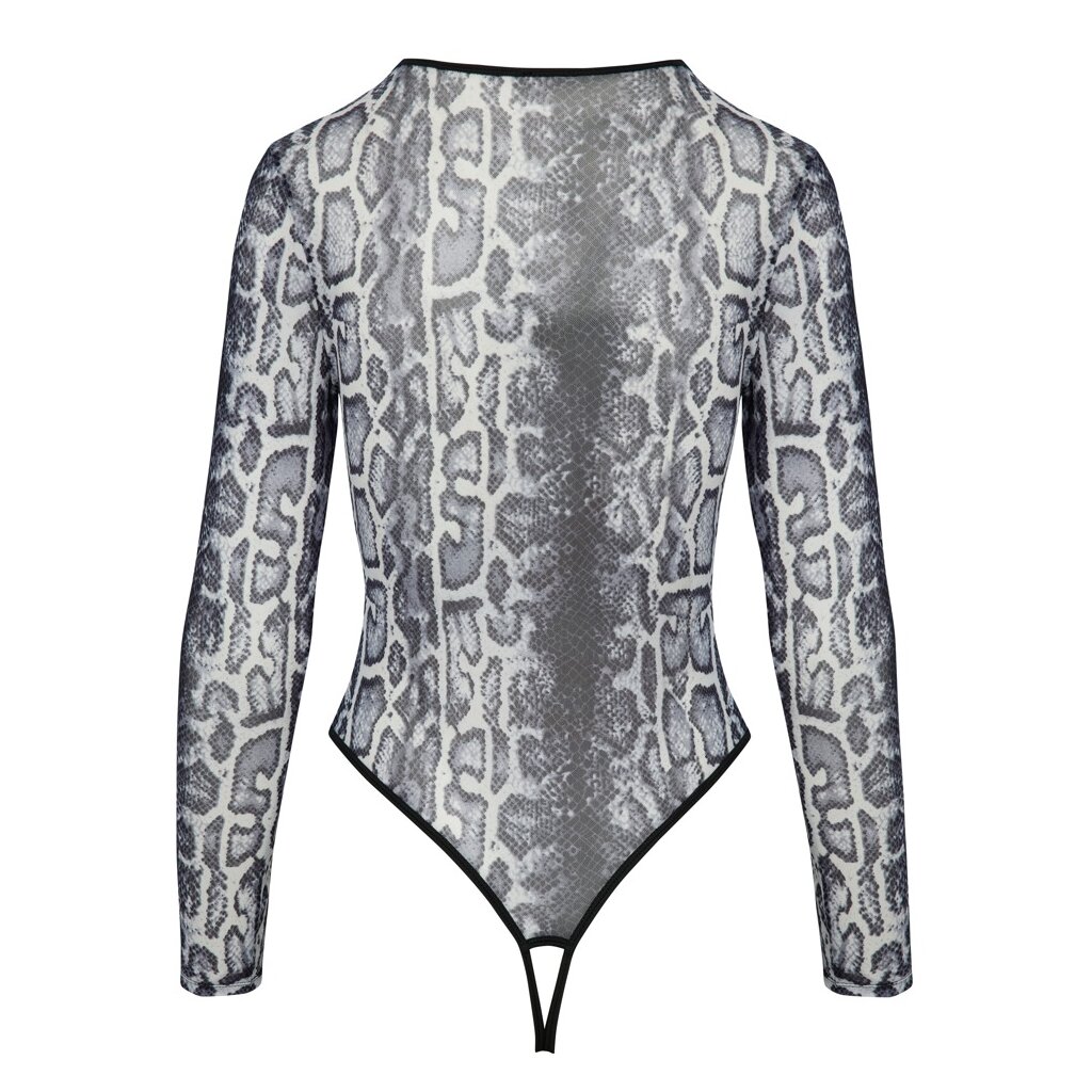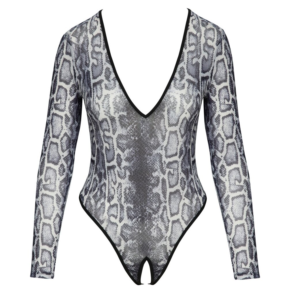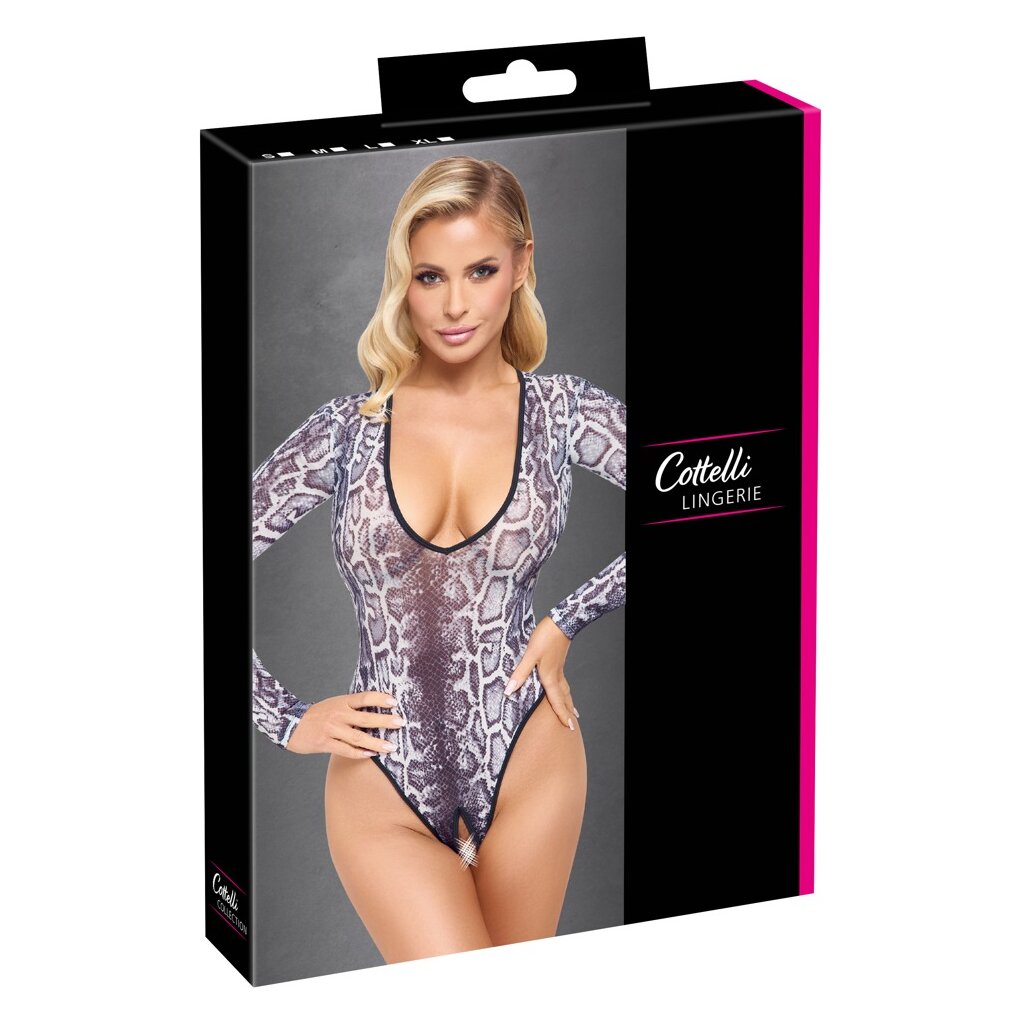 Experience a new dimension of sensuality with the seductive long-sleeved crotchless body from Cottelli LINGERIE! This lingerie is not just a piece of clothing, but an expression of your elegance and femininity. With its plunging neckline and high leg cut-outs, this body skilfully puts you in the limelight. The transparent snakeskin-look powernet gives it an exotic touch and emphasizes your curves in a seductive way. Thanks to the material made of 90% polyamide and 10% elastane, the bodysuit not only offers a sensual look, but is also extremely comfortable to wear.