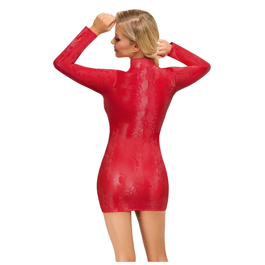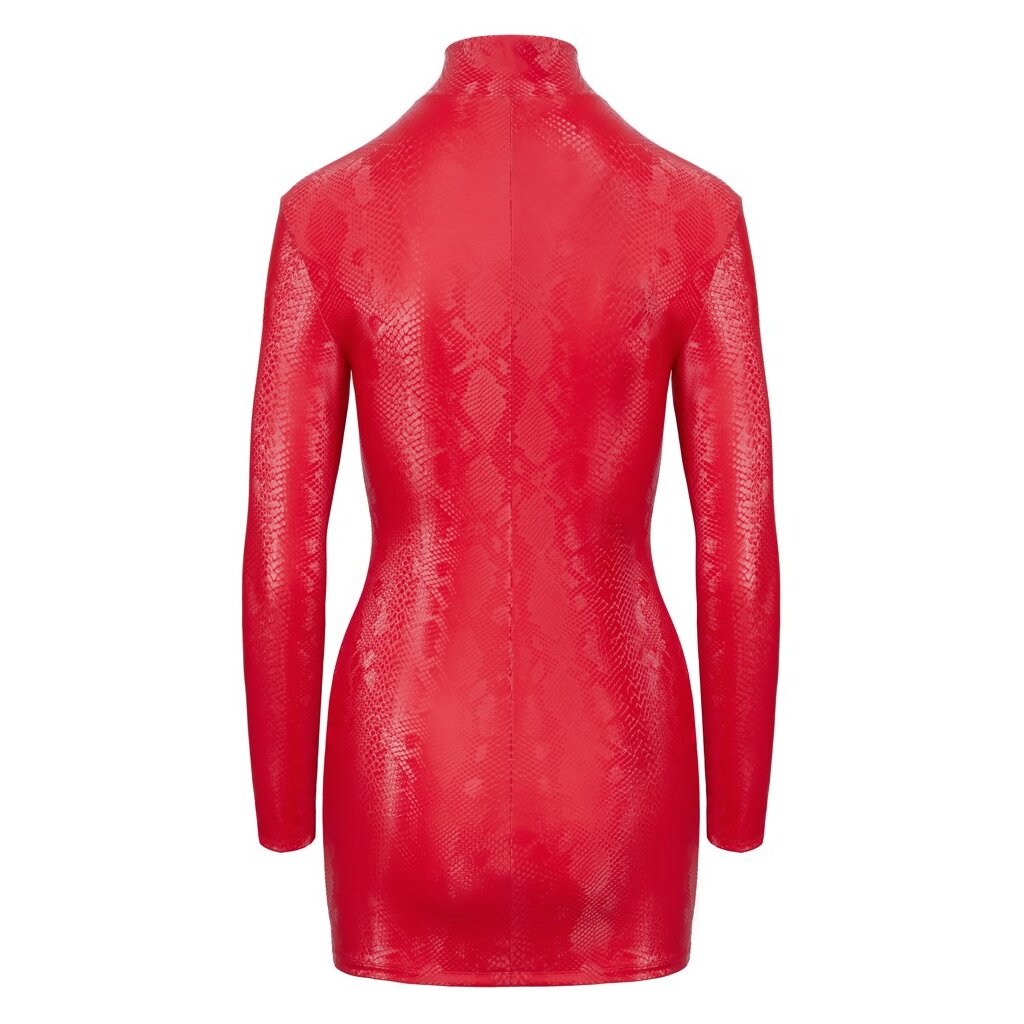 Robe moulante et extra courte de Cottelli PARTY au look tendance peau de serpent rouge. Avec des manches longues et un col montant. Douce, extensible et ajustée pour un grand confort de port. Avec une fermeture éclair sur toute la longueur à l'avant.