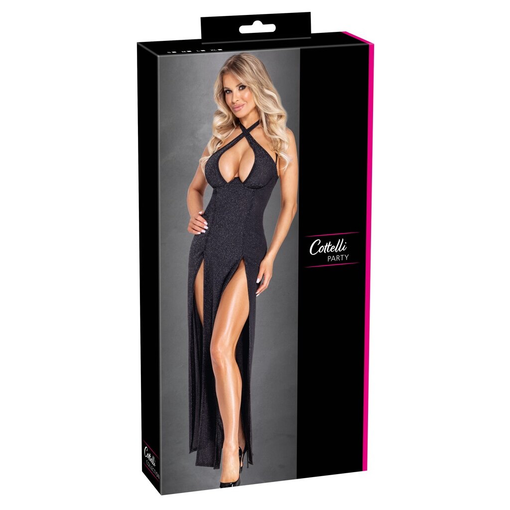 Glamour argenté et sex-appeal : Cette élégante longue robe de Cottelli PARTY brille d’un noir scintillant aux reflets argentés et attire tous les regards.
