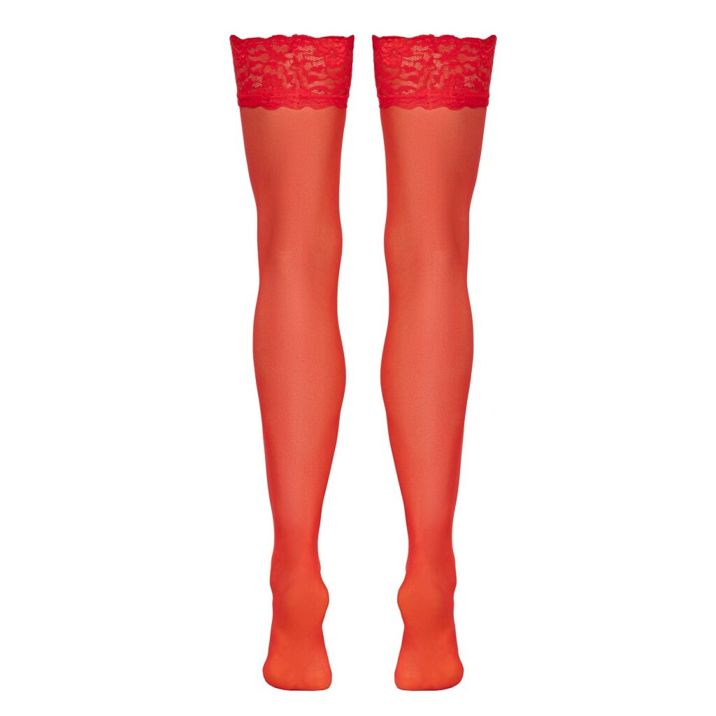 Seidige Strümpfe von Cottelli LEGWARE mit 9 cm breitem elastischem Spitzenbund. Garnstärke 20 Denier. Oeko-Tex zertifiziert.