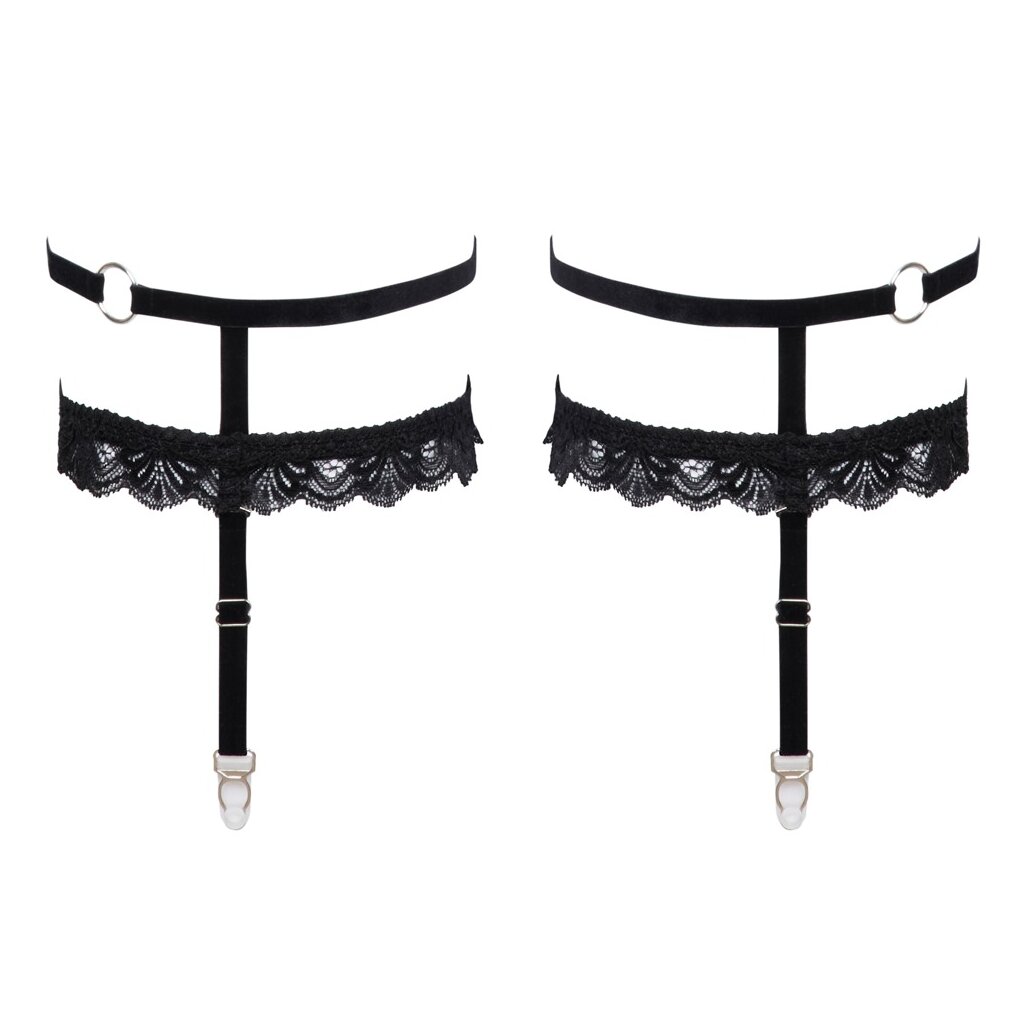 Les doubles jarretières sont fabriquées en velours luxueux et ornées d'anneaux argentés et de fine dentelle. Les jarretelles amovibles offrent une flexibilité et peuvent être ajustées en longueur pour garantir un ajustement parfait. Fabriquées à partir de matériaux de haute qualité – 70 % polyester et 30 % élasthanne pour les jarretières, et 90 % polyamide et 10 % élasthanne pour la dentelle – ces accessoires offrent à la fois douceur et élasticité.