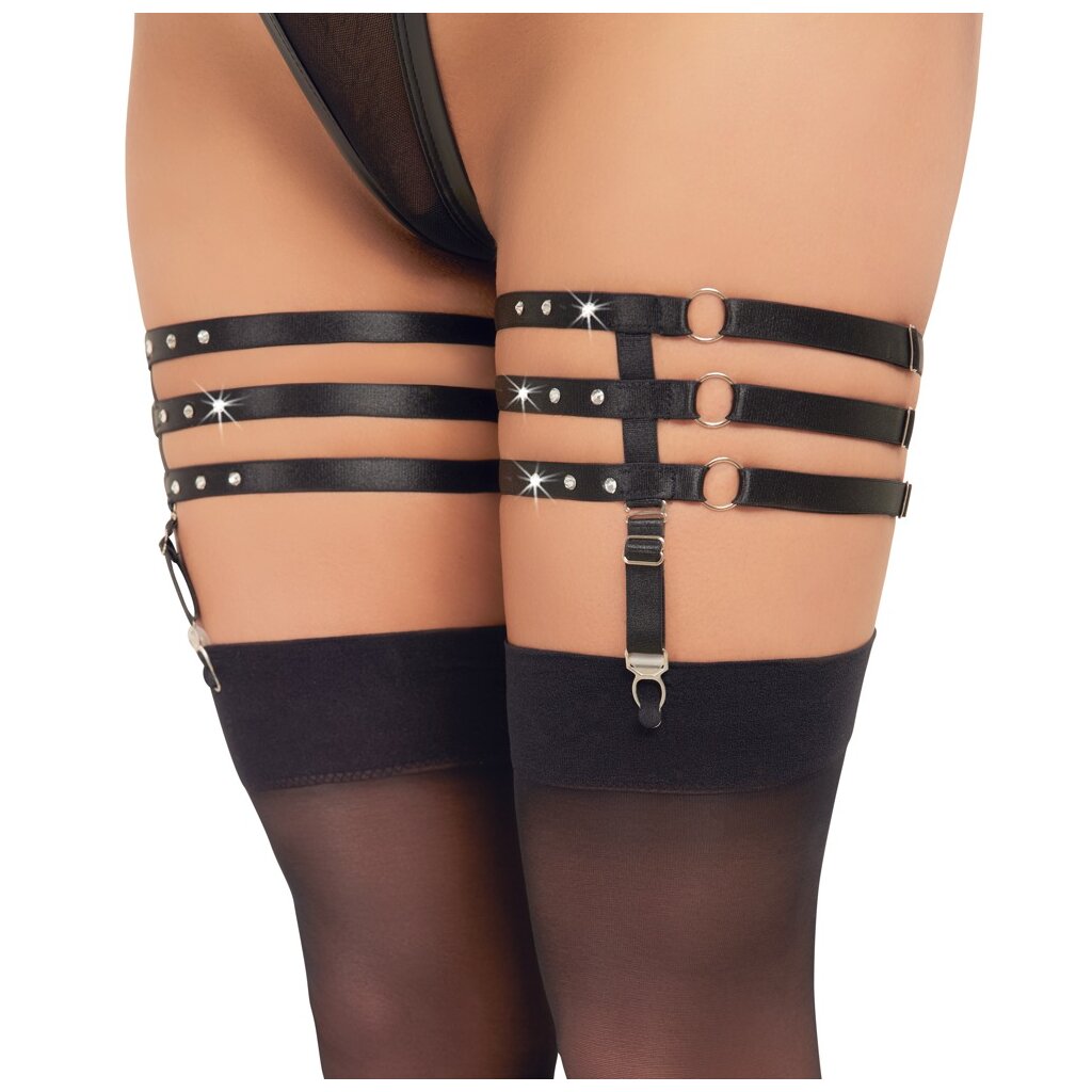 Découvrez le porte-jarretelles triple noir de Cottelli ACCESSOIRES – un incontournable pour toute garde-robe. Avec des bretelles extensibles douces, une brillance luxueuse et des ornements en strass scintillants, cet accessoire offre à la fois style et confort. Les anneaux argentés et les bretelles entièrement réglables assurent un ajustement parfait. Fabriqué à partir de 70 % de polyester et de 30 % d'élasthanne, il garantit durabilité. Commande dès maintenant ta paire de porte-jarretelles luxueux !