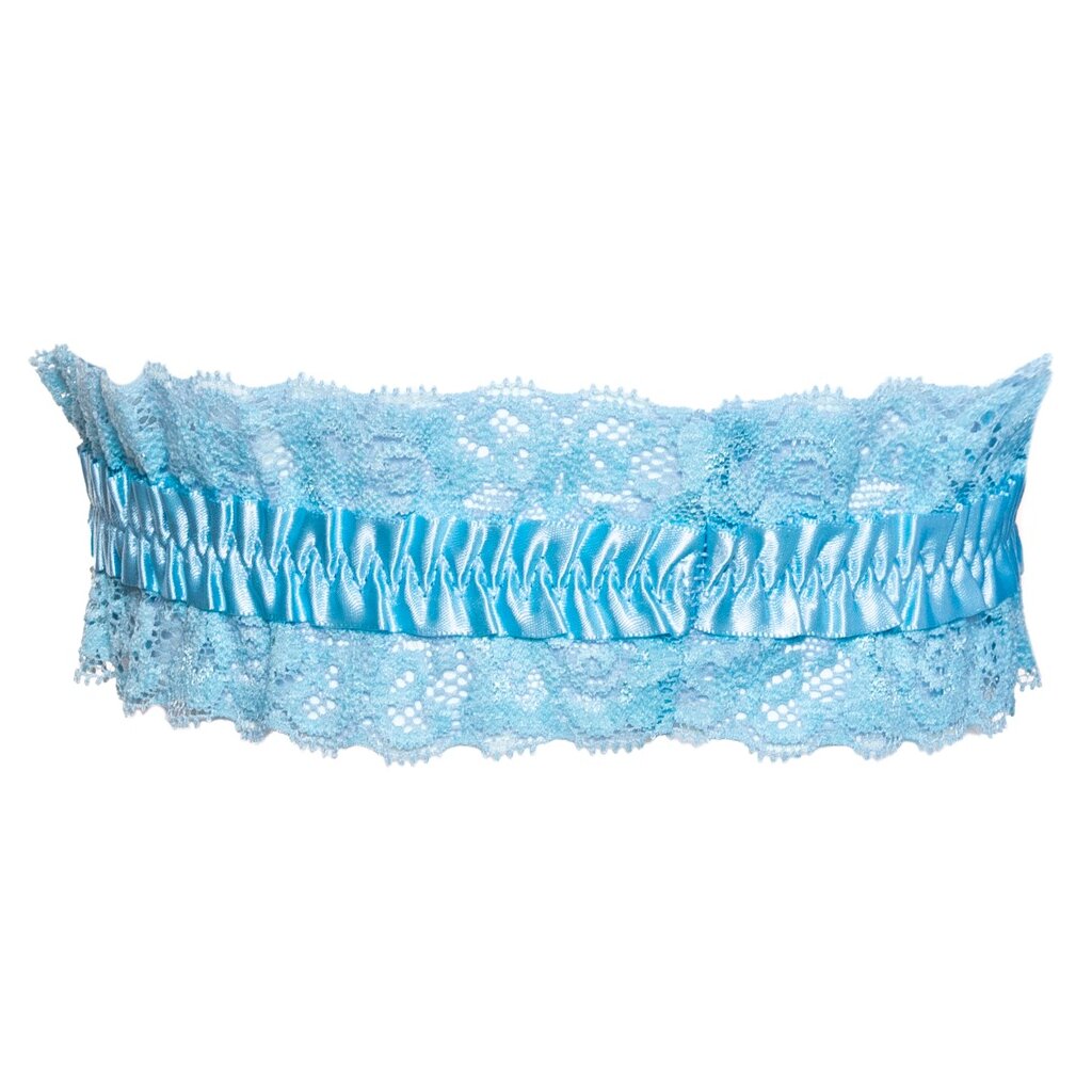 Hellblaues, 5,5 cm breites Strumpfband von Cottelli ACCESSOIRES aus weicher elastischer Spitze mit eingearbeitetem Stretchband für perfekten Halt. Mit Satinschleife verziert.