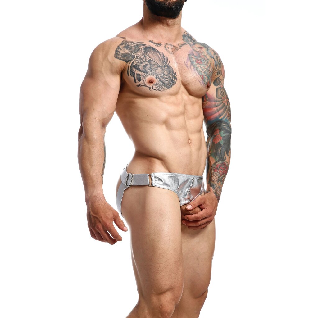 Der Dngeon Cockring Jockstrap: eine Synthese aus kühnem Design, überragendem Komfort und ethisch orientierten Produktionswerten. Stolz mit breiten Bändern getragen, die bequem Ihre Hüften umschließen, zieht jedes Detail, bis hin zu den strategisch platzierten Metallnieten, die Aufmerksamkeit auf sich. Über seine ästhetische Anziehungskraft hinaus bietet das Design des Jockstraps nicht nur einen verlockenden Anblick, sondern verspricht auch ein glattes Erscheinungsbild unter eng anliegender Kleidung. One Size / Material: PU-Leder | Metall