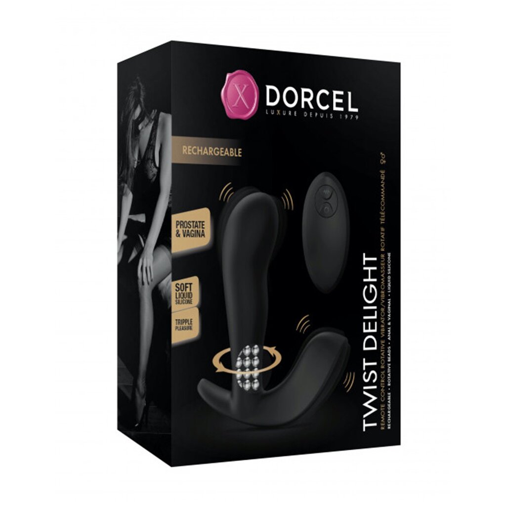 Discover the DORCEL Twist Delight vibrating anal plug, an exciting and versatile sex toy that has been specially developed for you. This anal vibrator offers you powerful stimulation of all intimate zones - be it the anus, vagina, clitoris or perineum. With two motors, each offering 10 different vibration modes and 5 rotation modes, you can explore your pleasure in a variety of ways. The remote control allows you to enjoy exciting solo or partner play, while the ergonomic curve provides targeted stimulation of the G-spot and P-spot. The perfect shape of the Twist Delight is ideal for G-spot and P-spot stimulation. The anal plug also has rotating beads for additional stimulation and an external massager for the perineum and clitoris. Enjoy carefree use in the water, as the Twist Delight is waterproof. It is also USB rechargeable, which ensures environmentally friendly operation. Immerse yourself in a world of intense stimulation and unforgettable moments of pleasure with the DORCEL Twist Delight - for an exciting and satisfying experience that will indulge your senses!