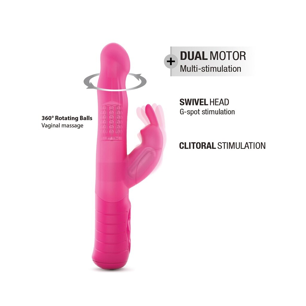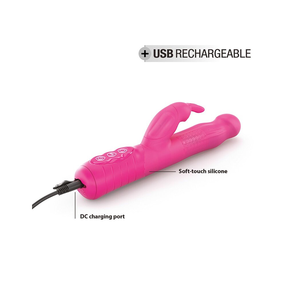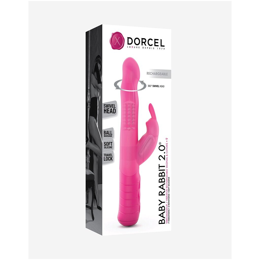Experience intense stimulation for your vagina and clitoris with our DORCEL Baby Rabbit 2.0 Pink vibrator! This versatile rabbit vibrator offers you 3 simultaneous functions: special G-spot friction, rotating beads and a vibrating clitoral section. Explosive experiences are guaranteed! We have made this vibrator from 100% elastomer so that it feels comfortable against your skin. With 7 vibration settings and 3 rotation settings, you can enjoy varied moments of pleasure. The compact size of Ø 2.9 cm x 22 cm ensures easy handling, and the light weight of just 0.306 kg makes it particularly comfortable to use. Our vibrator is USB rechargeable so that you can experience lasting pleasure. It is waterproof and splashproof, so you can use it without worry. The attractive pink color gives it a playful look, while the high-quality silicone material guarantees pleasant touches. Immerse yourself in a world of pleasure and passion with our DORCEL vibrator Baby Rabbit 2.0 Pink!